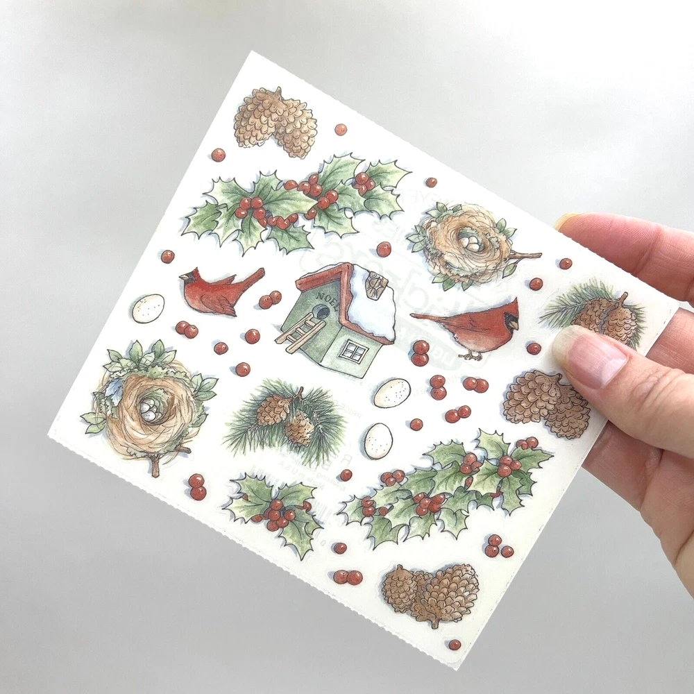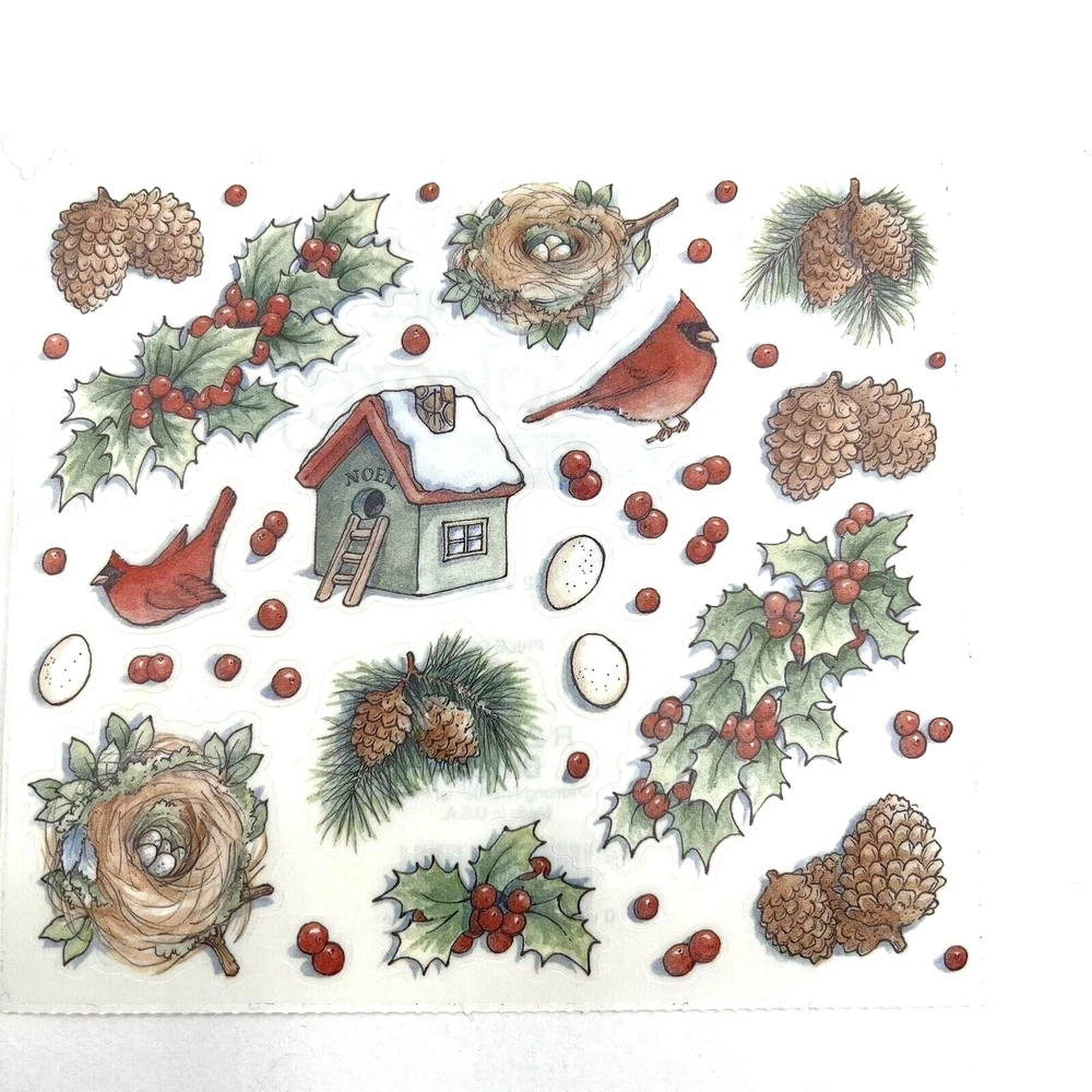 3 perforations. Birds R 2110-145. These are a clear slightly frosted flexible plastic sticker. Pretty designs. They are great for making holiday cards. Vintage. I have more stickers, washi tape and paper for sale. I do combine shipping. Please put all the items you want to purchase in ONE cart and then pay. I will refund you the difference in shipping after shipping label is printed. Let me know if you have any questions through eBay messaging. Thank you for stopping by!