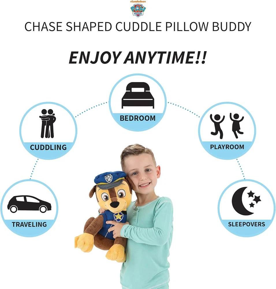 About this item PAW PATROL CHASE DESIGN: Fans of the popular Nickelodeon animated series Paw Patrol will love cuddling up with this Chase shaped cuddle pillow. Fun dimensional and embroidered details help bring out the brave spirit and adorable style of Chase the police dog. FUN AND CUDDLY: This cuddle pillow brings Chase to life with fun character details that include dimensional ears, tail and police hat along with an attached backpack and instantly recognizable embroidered facial details. A great travel accessory for use in home, car, camping and sleepovers for napping and cuddling. SOFT PLUSH QUALITY: Your little one would love to hug and snuggle up with their favorite pillow pal by their side. Made of super soft plush material, this pillow pet is a comfy and colorful accessory to a child's bedroom, nursery, playroom and a cute home decor addition. ITEM INCLUDES: The Paw Patrol Chase character shaped plush cuddle pillow buddy measures approximately 36CM (14") x 18CM (7") x 16CM (6"). The perfect size to snuggle while sleeping or as a stuffed animal for toddler and children play time. EASY CARE: To maintain the animated cartoon character's color and vibrancy, simply spot clean as needed. › ||DPSP-AMB097CJV6CM Our Store We have more items available. Please check them out. Shipping & Handling Flat shipping rate, if specified, does not apply to Canadian territories and remote areas. For U.S., flat shipping rate only applies to lower 48 states. Please contact us for shipping rate if flat shipping rate does not apply to you. Upon receipt of payment, item will ship via Canada Post surface or UPS, Fedex Ground service or another economic service within the timeline specified in item listing. If possible, we will combine shipping for multiple items. International Orders Import duties, taxes, customs fees and charges are not included in the item price or shipping charges. These charges are normally collected when you pick up the package. Please check with your country's customs office on what these additional charges will be prior to buying the item(s). International buyers are responsible for these charges. Please note that package shipped from outside your country can be held up in customs and it can cause delay in shipping time. This is beyond our control and there is nothing we can do to speed up the process. Sales Tax For the Canadian buyer, applicable retail sales tax will be charged. Taxes are charged on both Item Price and Shipping & Handling charges if applicable. Store Policy Sales Agreement Upon purchase, you have entered a binding contract under the terms of the listing. If an item is out of stock or on backorder , you will be notified and given the option to wait for the item to become available, choose another item, or a full refund. Backordered items are shipped as they become available. Return and Refund Unless specified otherwise, every item purchase (except health, hygienic, food products and items with No Return Accepted specified in the listing) comes with unconditional money back guarantee minus shipping & handling charge and 20% restocking fee . Before returning, please contact us for a RMA number. All returns must come with a RMA number. Return without a RMA number will NOT be accepted. Buyer is responsible for the shipping cost of returning the item(s) to us and all original shipping, handling, insurance, and other fee associated with the returned item(s) are not refundable. For free shipping item(s), we still pay for shipping when sending item(s). The shipping cost associated with free shipping item(s) is not refundable. All merchandise returned must be in its original states with tag intact, undamaged, clean and unused. Any return must be made within 30 days of receipt. Upon receipt and careful examination of the returned merchandise, refund will be issued and you will be notified after the refund is processed. Please allow 5 business days from the time we receive your returned item(s) for your refund to be issued. Communication All communication must be conducted via online message. We do not offer customer service over the phone. We answer all messages promptly, usually within 1-2 days. As a general note, if you do encounter a problem with your item(s), please contact us as soon as possible before leaving a negative feedback. We will do our best to help you. Contact Us For local pickup, special requests and special offers, please contact us.