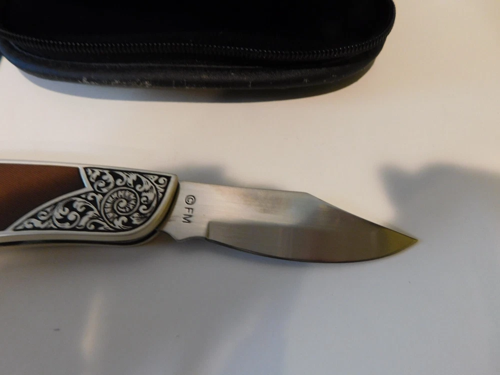 The knife is new with tag. The finish on the case is flaking off in some areas. Look at pictures.