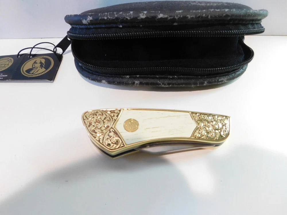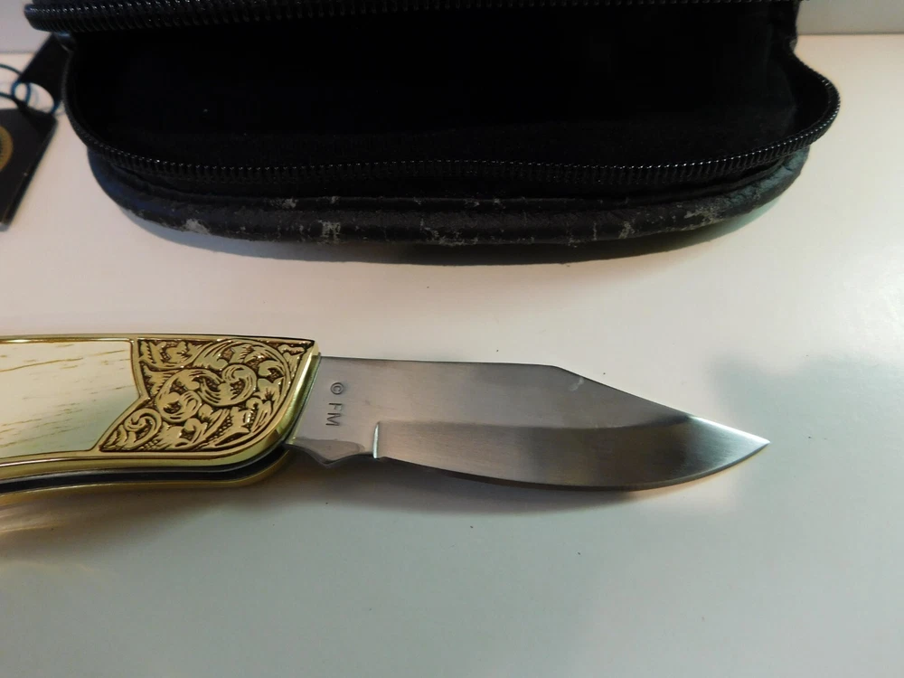 The knife is new with tag. The finish on the case is flaking off in some areas. Look at pictures.