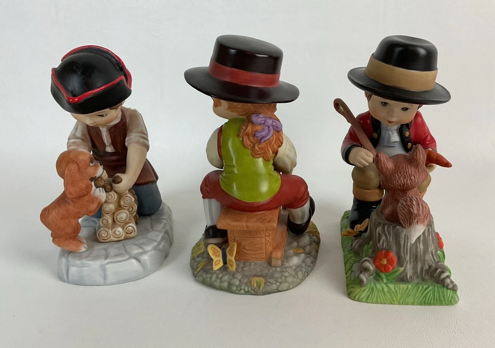 This set of 6 Franklin porcelain figurines features Debbie Bell Jarrett, a beloved character from the 1980s. Each figurine is crafted with intricate details and painted with vibrant colors, making them a perfect addition to any collection. The set includes male figurines and is suitable for boys of all ages. The figurines were manufactured in Taiwan in 1985 and are an excellent representation of the time period. These collectible sculptures are perfect for display in any room of your home and are sure to add a touch of nostalgia to your decor.