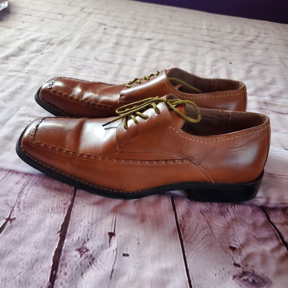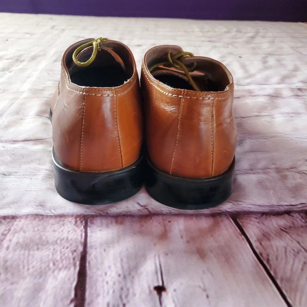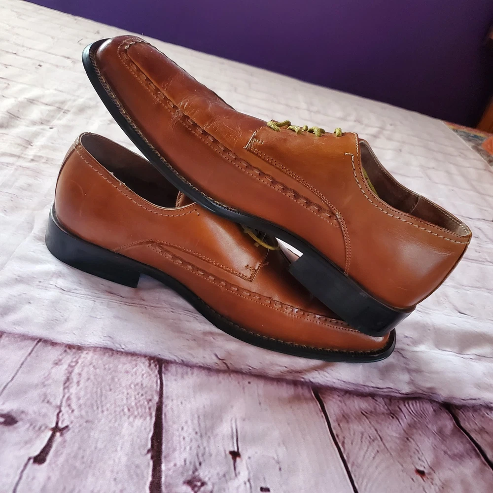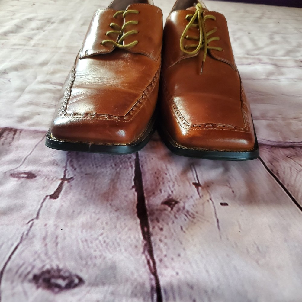 Elevate your style with these sleek tan leather dress shoes. Perfect for any formal occasion. In excellent condition. Please see pictures for details and let me know if you have any questions I ship the next business day