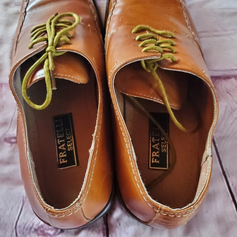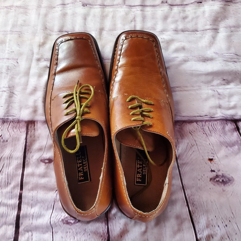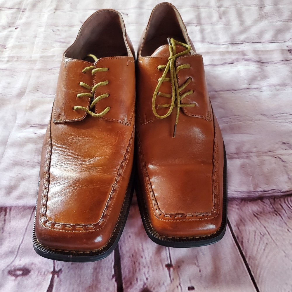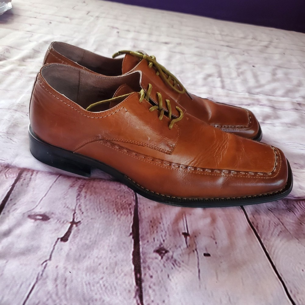 Elevate your style with these sleek tan leather dress shoes. Perfect for any formal occasion. In excellent condition. Please see pictures for details and let me know if you have any questions I ship the next business day