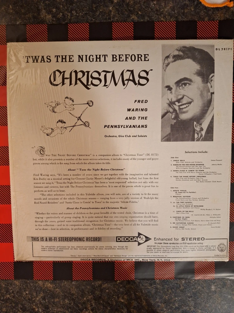 Fred Waring ‘Twas The Night Before Christmas Vinyl LP Decca DL 78171