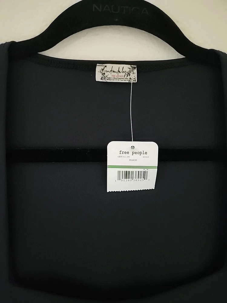 Elevate your wardrobe with this contemporary black body suit from Free People. The slim-fit and classic/fitted sleeve design make it a versatile piece that can be dressed up or down. The square neckline adds a touch of elegance, while the solid pattern and large size make it a statement piece. Perfect for any occasion, this T-shirt is a must-have for any woman's wardrobe.