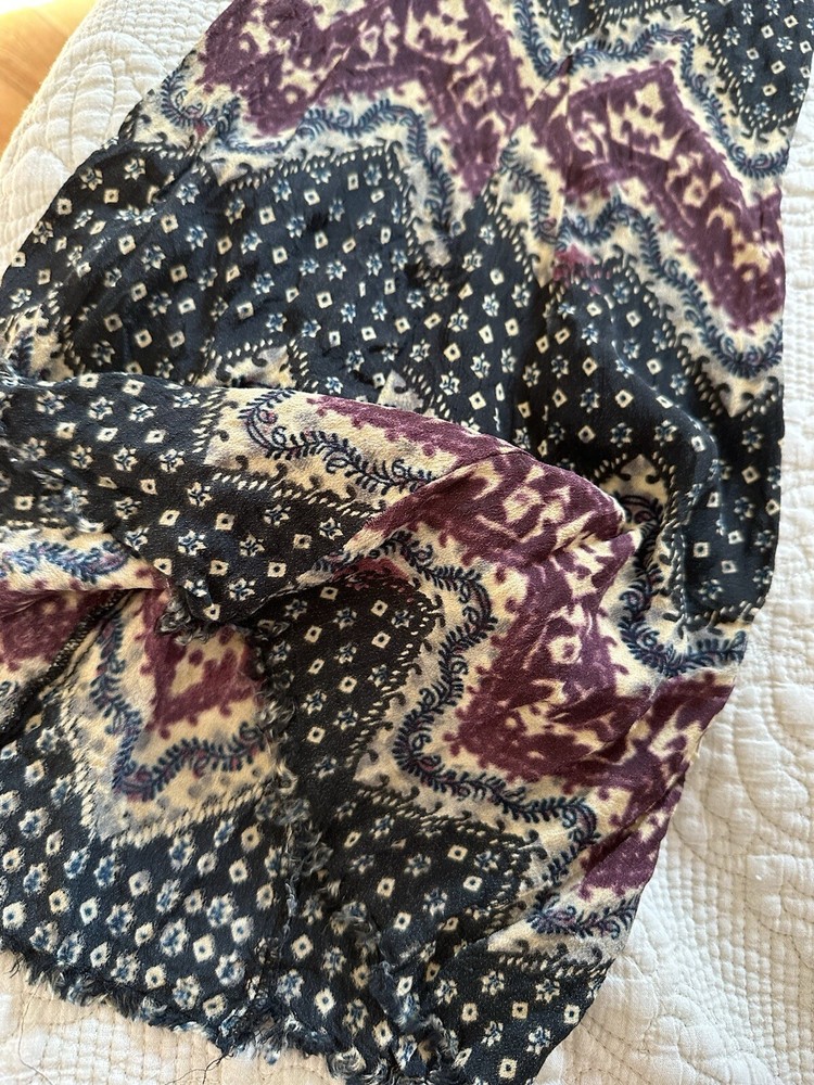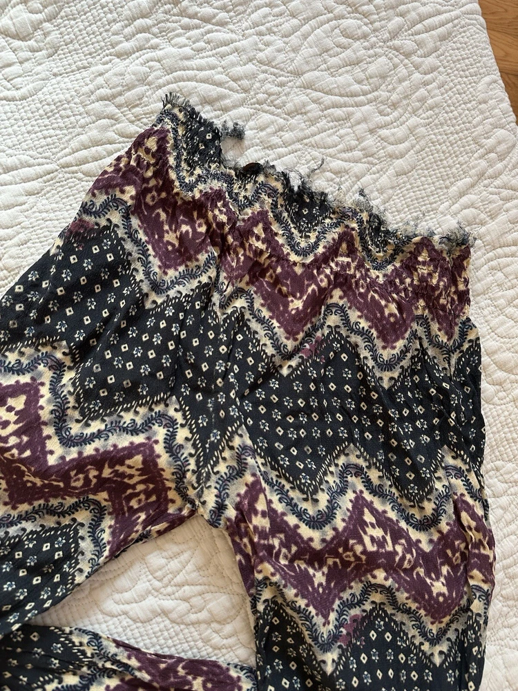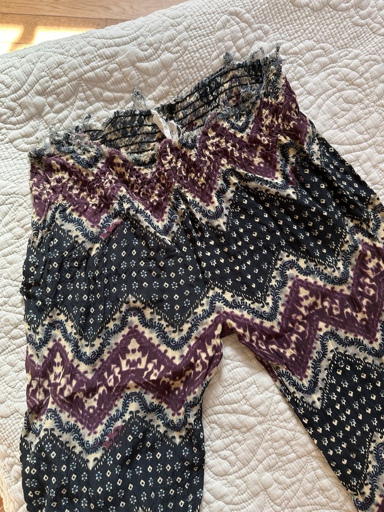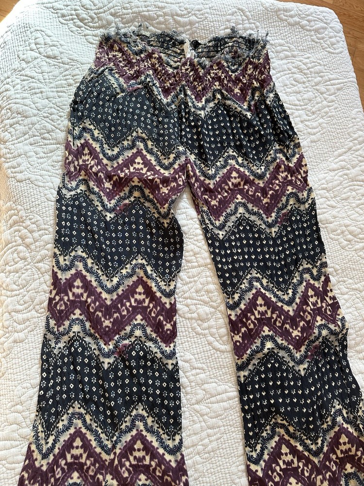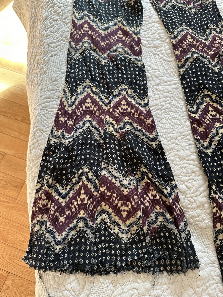 VNTG free people printed rayon flare pants , soooooo flattering it’s crazy, slight v shape cut for the waist, mid rise , size xs
