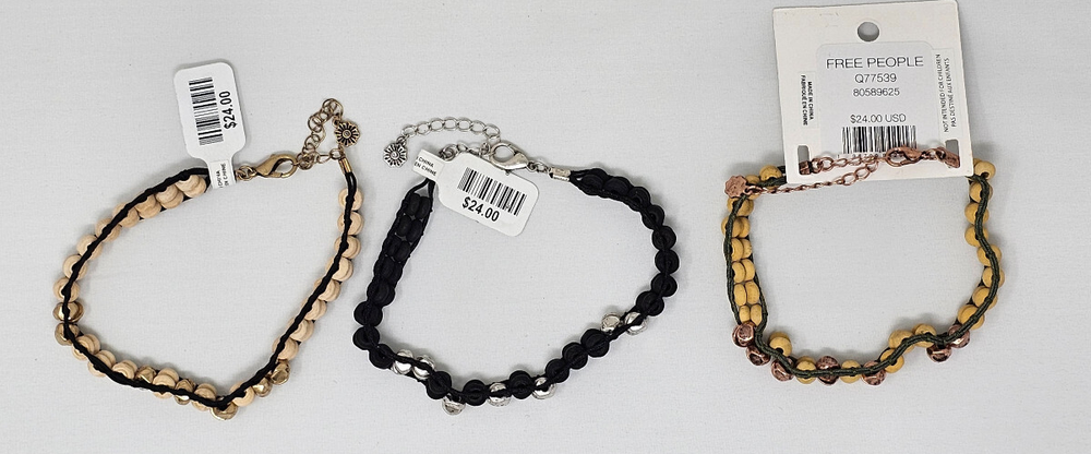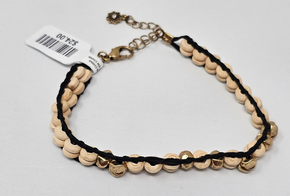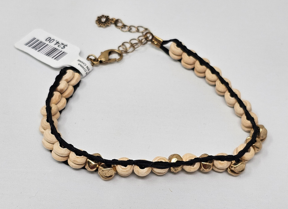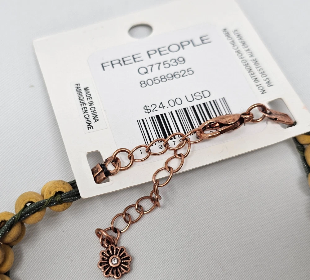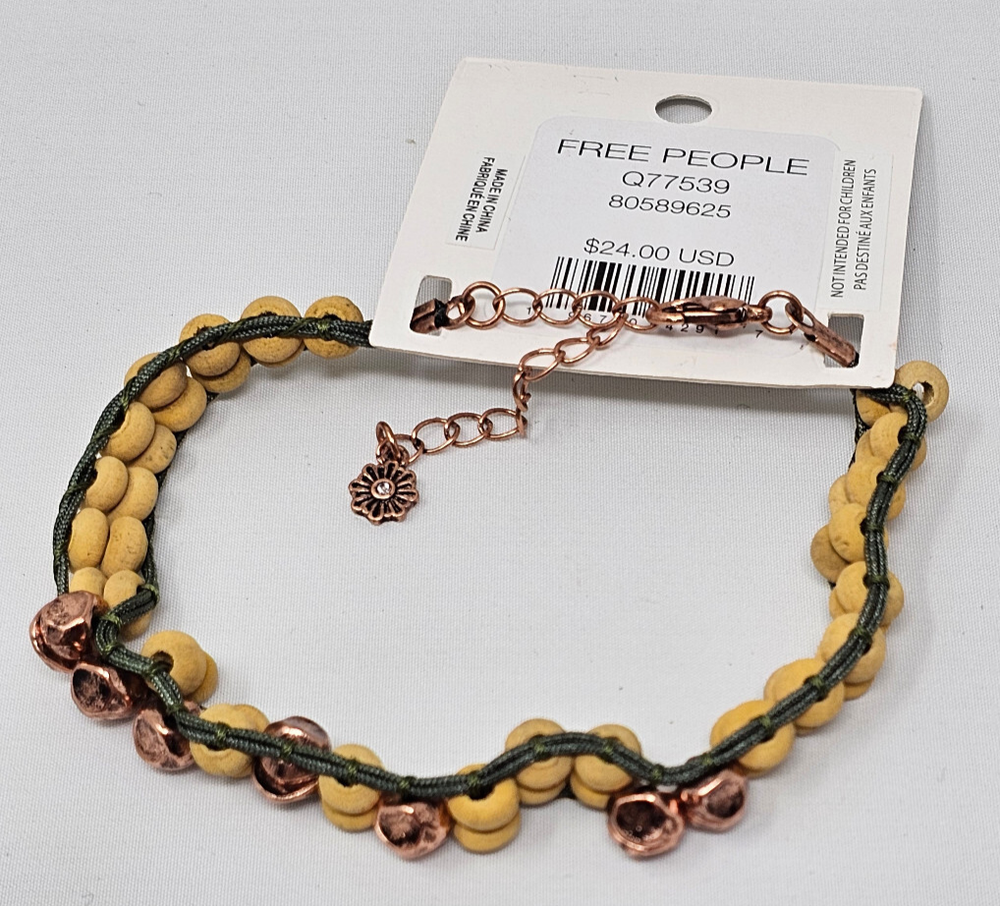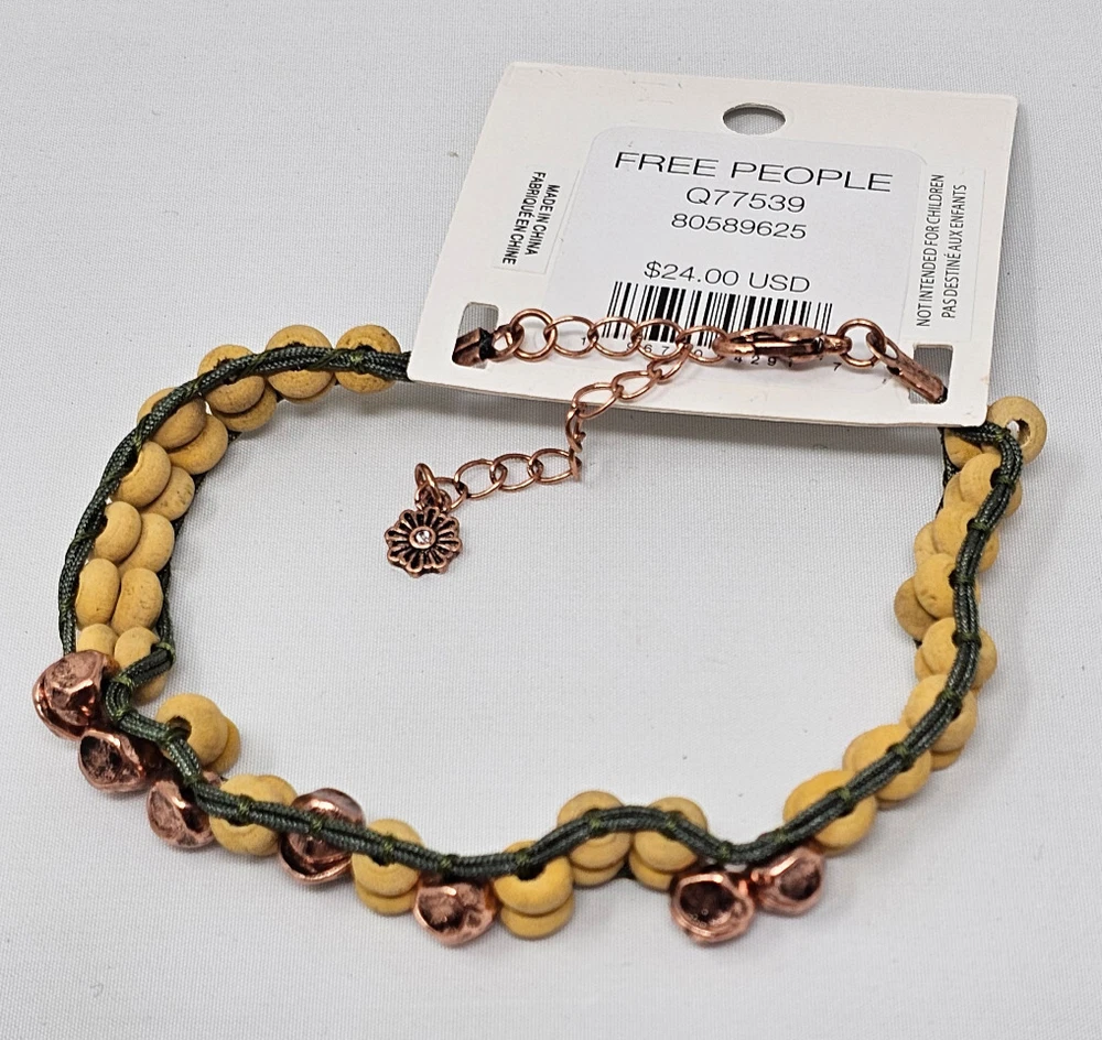 Free People Wood Beaded Anklet NWT $24 Anklet style featuring wood beds woven with cord and metal beads. Size: 8.5" (including closure) + 2" extender chain
