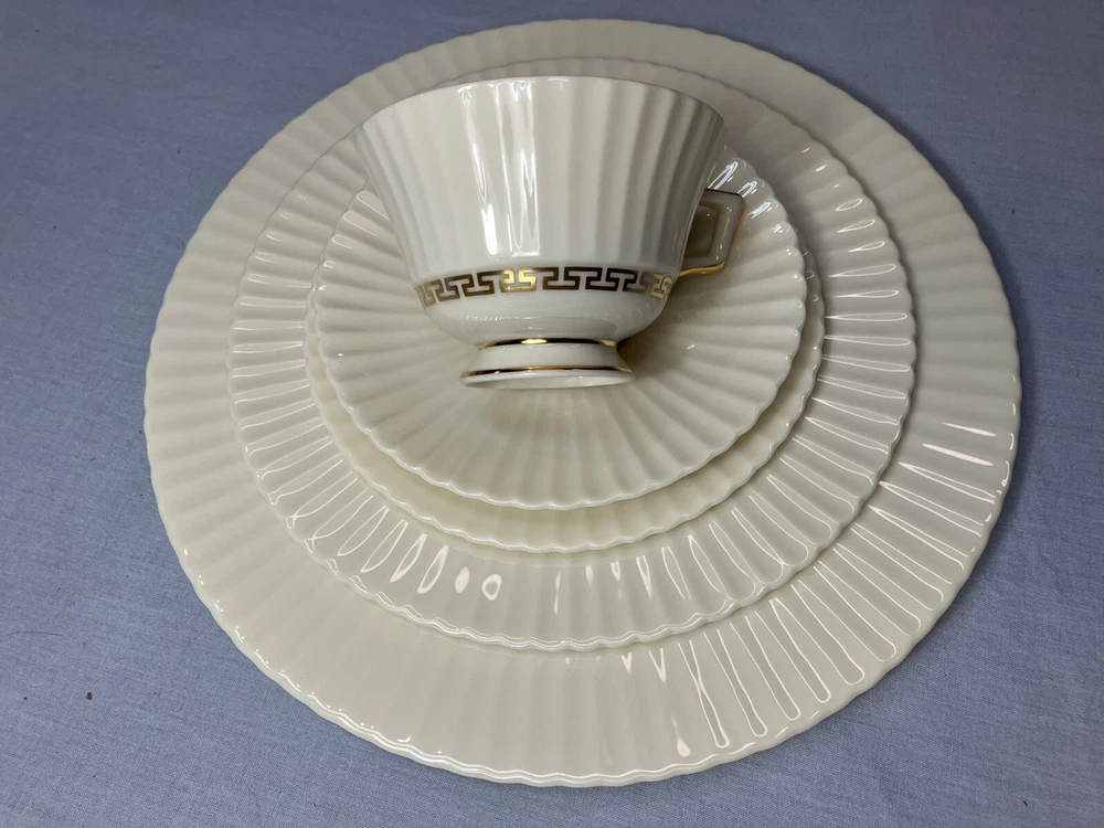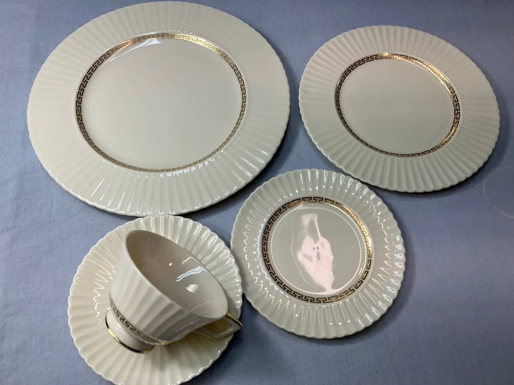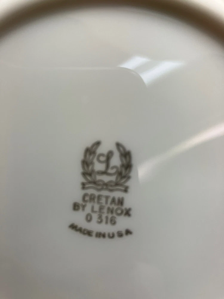 A very nice Lenox Cretan Fine China 5 Piece Place Setting in excellent condition, only slight use no chips cracks or crazing. Dinner plate is 10 7/8" Salad plate is 8 1/2" and Bread & Butter plate is 6 3/8". Free Shipping!