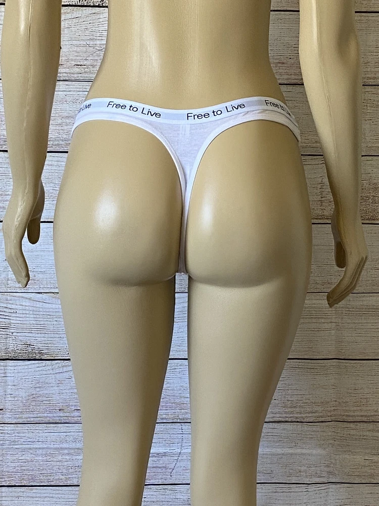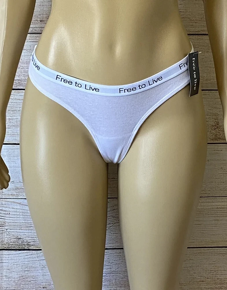 Size Type:RegularFeatures:NaCharacter:NaType:PantiesCharacter Family:Free!Accents:LogoNumber in Pack:NaTheme:NaFabric Type:NaMaterial:Cotton BlendDepartment:WomenRise:N/ABrand:Free To LiveSize:LVintage:NoPattern:SolidColor:WhiteStyle:Thong/StringCompression Area:Buttocks