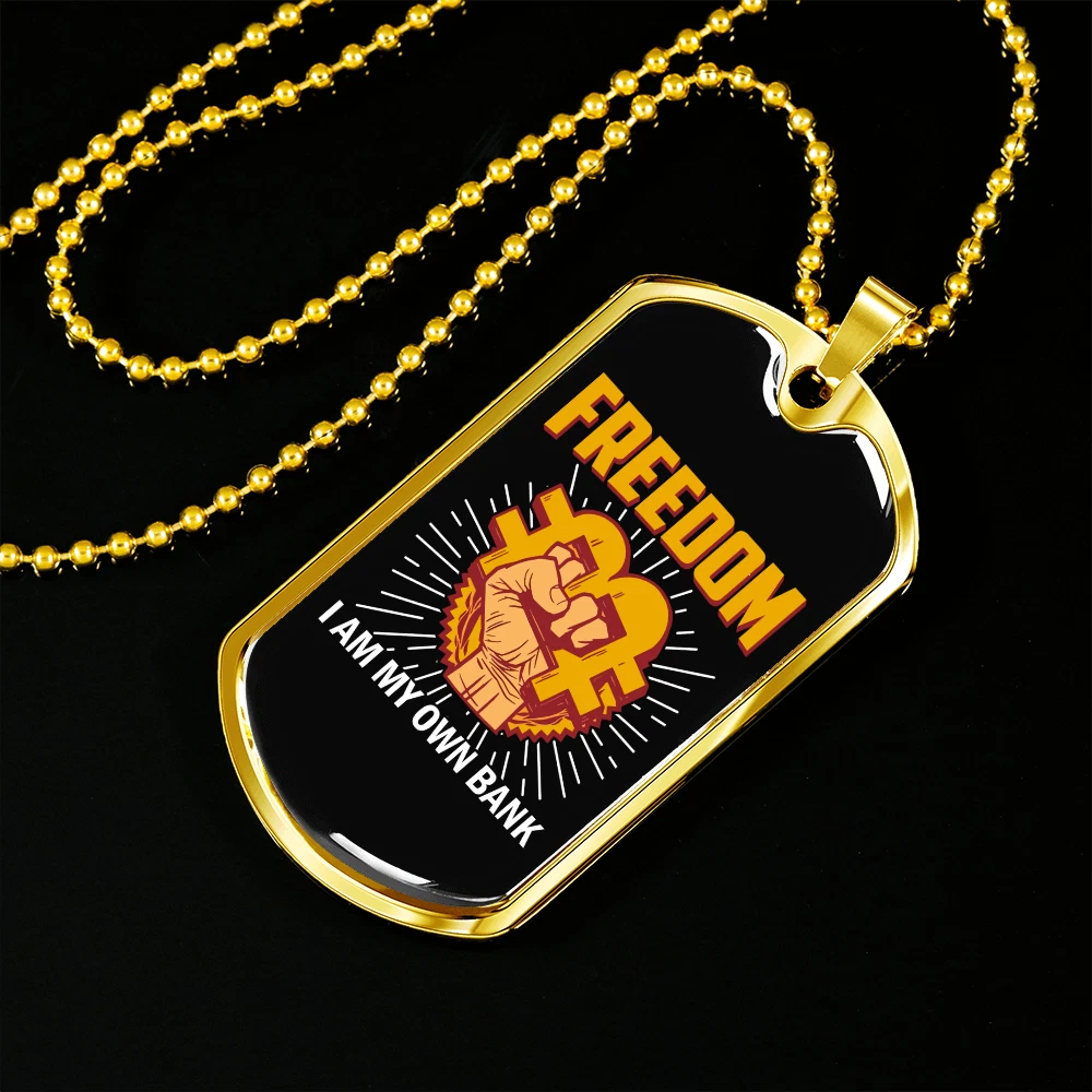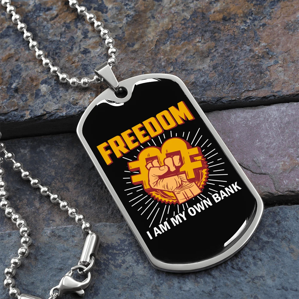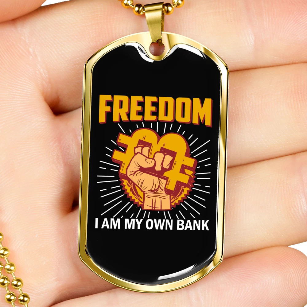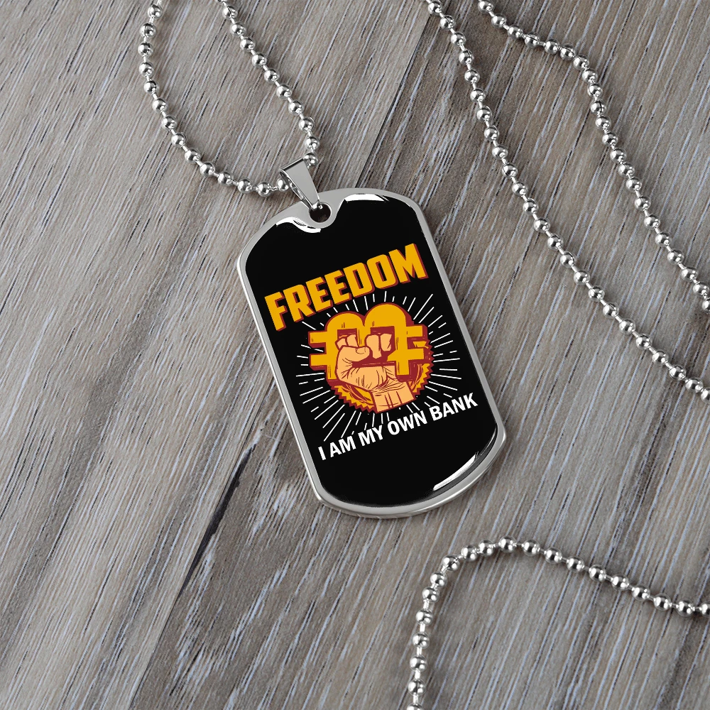 Freedom Crypto Necklace Stainless Steel or 18k Gold Dog Tag 24" Chain