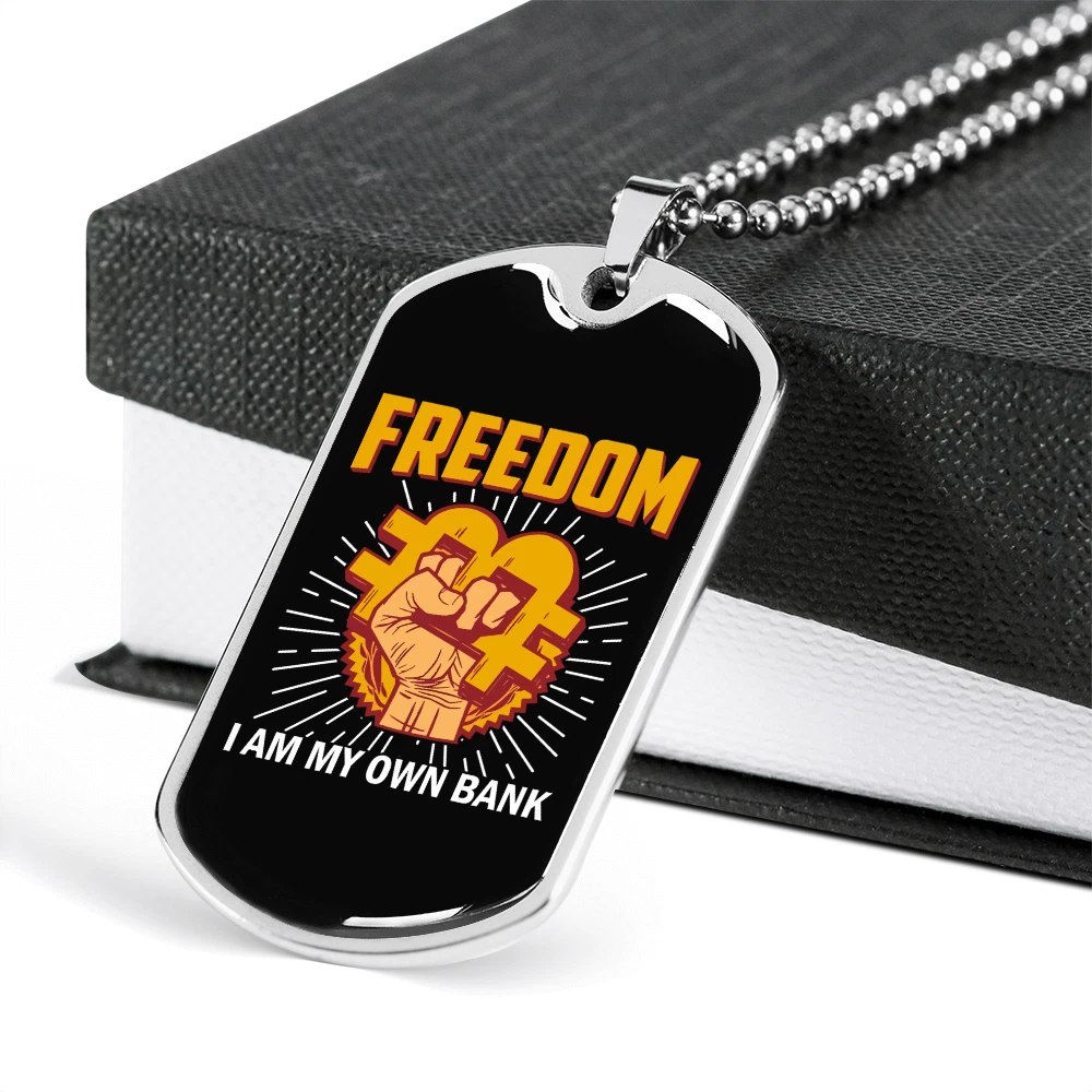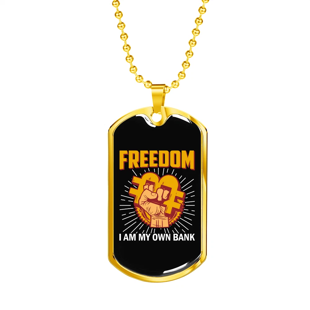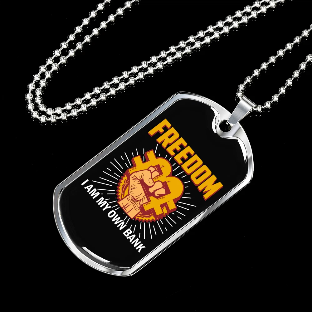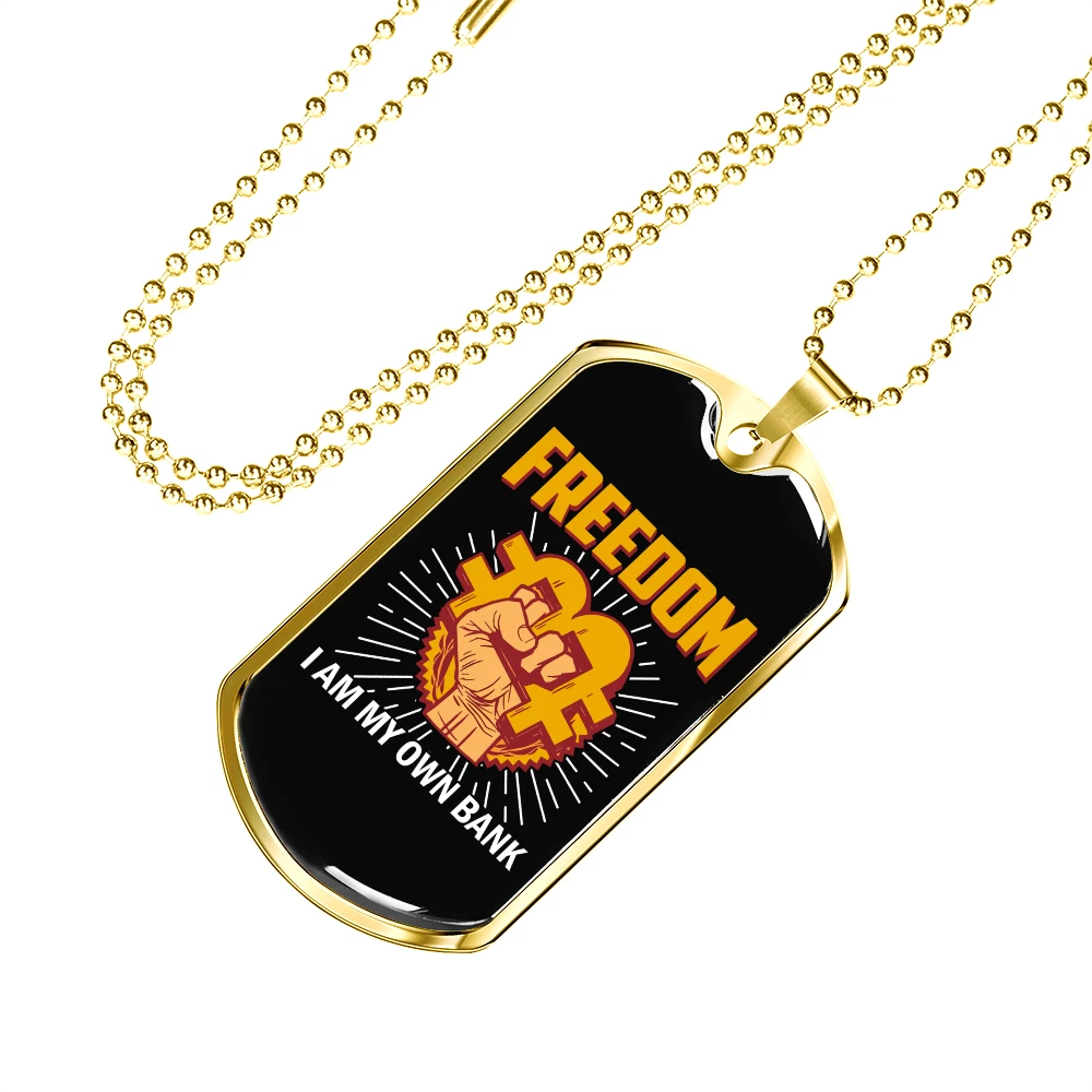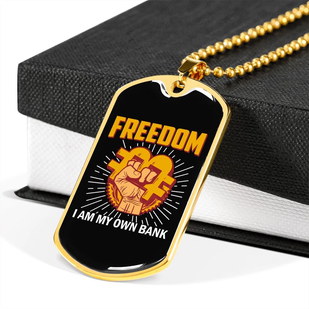Freedom Crypto Necklace Stainless Steel or 18k Gold Dog Tag 24" Chain