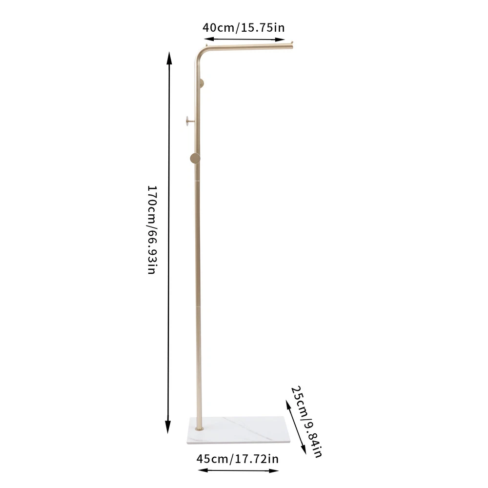 welcome to my store! Description Are You Looking for a Clothes Rack with a Small Footprint? This Freestanding C lothing Rack Can Easily Meet Your Daily Needs. It Is Made of Sturdy Iron Material, Ensuring a Longer Service Life. the Surface High-temperature Baking Paint Can Provide a Rust-proof Effec t. It Helps You to Keep Your Clothes from Being Scattered Everywhere in the House and Provides You with a Warm Living, Which Can Effectively Solve the Storage Problems in Small Homes. Key Features High-quality Material : This Rack Is Made of Top-quality Iron, Which Is Strong and Durable. the Surface Is Delicately Baked with High-temperature Lacquer, so It Is Wear and Corrosion-resistant. Space-saving: This Clothes Rack Occupies an Area of Only 0.1125/1.21ft² , so It Won't Take up Too Much of Your Floor Space, and Effectively Solve the Storage Problems of Small Rooms. High Enough: with a Height of 67inch, This Clothes Rack Is High Enough to Hang Long Dresses and Coats so They Won't Drag on the Floor and You Can Say Goodbye to Clothes Creases. Three-in-one Configuration: the Clothes Rack with Hanging Area, Side Hanging Area, and Storage Area. It Can Multifunctional Storage Clothes, Bags, Hats, and Shoes to Realize a Full Range of Storage. the Small Convenient Effect Can Make Happiness Magnified Ten Thousand Times. Unique Styling Design: the Decorative Golden Shelf with an Aesthetic Design Add a New Embellishment to Your Home to Enjoy Refined Life. Open Design: the Open Design of the Clothes Rack Makes It Easy to Find out Where the Clothes Are, and It Is Also Convenient to Pick up the Clothes. Stable Structure: the Base Adopts a Rectangular Structure, Which Is More Stable than Ordinary Clothes Racks. and the Clothes Rack Is Made of Thickened and Reinforced Bottom Plate with Non-slip Feet, Which Makes It More Solid and Won't Shake. Partitionable Storage: This Clothes Rack Has a Separate Coat Rack, Side Hanging Bag Area, and Double Storage Layers. You Can Place Items in the Right Place According to the Type of Items, Making Your Room Look Neat and Organized and Easy to Access. High Load-bearing Capacity: with Thickened and Enlarged Hanging Rod and Rectangular Base, This Clothes Rack Allows You to Store About 10 Pieces of Summer Clothes, 5 Pieces of Winter Clothes, and 3 Pieces of Coats for Your Daily Needs. Easy to Assemble: This Rack Is Simple in Construction and Comes with All the Necessary Accessories, so You Can Install It with Ease. Easy to Clean: the Simple Structure and Smooth Surface of the Clothes Rack Allows for Easy Cleaning. You Only Need to Wipe It with a Cloth, and Then It Will Shine like a Brand-new One. Customer Service: We Aim to Provide Quality Products and Services. If You Have Any Problems, Please Feel Free to Contact Us. We Will Reply and Solve the Problem for You As Soon As Possible Details Thickened Rock Slab: the Bottom of the Clothes Rack Has a Rock Slab, Which Effectively Prevent Moisture and Extend the Life of the Clothes Rack. Double Side Anti-slip Beads: Both Ends of the Clothes Rack Have Anti-slip Beads, Which Can Effectively Prevent Clothes from Slipping off. Side Hooks: There Are Three Hooks on Each Side of the Clothes Rack to Hang Bags, Hats, Bath Towels, Etc, Which Expands the Storage Capacity and Makes It Easy for You to Pick up and Place the Bags. and the Three Hooks Are Oriented in Different Directions to Avoid Stacking of Items for Easy Access. High-temperature Baking Paint Process: the Surface of the Clothes Rack Uses an Environmentally Friendly High-temperature Baking Paint Process, Making the Surface of the Clothes Rack Bright and Beautiful, Rust-resistant, and Anti-lacquer . Rounded Edges: the Edge of the Clothes Rack Is Polished Very Smooth, so It Will Not Scratch Your Hands, but Also Prevent Clothes and Bags from Hooking. Multifunctional Base: You Can Place Shoes on the Base, and Can Also Place Storage Boxes to Store Small Items or Cleaning Objects. Anti-slip Feet: the Bottom of the Clothes Rack Is Equipped with Four Anti-slip Feet, You Can Rest Assured That the Clothes Rack Will Be Placed on Any Smooth Ground. Application It Can Be Used in the Hallway, Bedroom, Living Room, Bathroom and Study Room, Clothes Store, Guest Room, Kid's Room, Laundry Room, or Dorm. Specification Color: Gold Style: Modern Material: Iron, Rock Slab Surface Treatment: High-temperature Baking Paint Mounting Type: Freestanding Gross Weight: 7.15kg/15.76lbs Net Weight: 6.8kg/14.99lbs Package Size: 62*44*12cm/24.41*17.32*4.72in Product Size:45*25*170cm/17.72*9.84*67in Hanging Rod Length: 40cm/15.75in Package Included 3*Iron Frames 1* Rock Slab 4* Feet All Accessories for Installation Notes Please Allow the Slight Color Difference Caused by the Shooting Light and 1-3cm Error Due to Manual Measurement. Please Make Sure You Do Not Mind Before You Order. Payment Delivery details Terms of sales About us Contact us Payment We accept ebay payment 。 Fees such as import duties, taxes are not included in the item price or shipping costs. These charges are the buyer's responsibility. Delivery details Shipping: 2-9 working days to: USA Terms of sales We maintain high standards of excellence and strive for hundred percent customer satisfaction. Feedback is very important to us. We hope that you contact us immediately before you give neutral or negative feedback, so that we can address your concerns. It is impossible to address issues if we do not know about them! About us Your satis faction is our ultimate goal. We work hard to earn your trust and future business. Our certified technicians have tested each item before shipping. The unit comes with 1 year limited warranty on all manufacturing defects. a) If you receive a defective item, you may return it or ask for a discount. Please contact us within 14 days after you receive the package. b) What you returned must be intact and in its original packaging as re? u. Customer is responsible for shipping costs of the returned item. c) We will cover