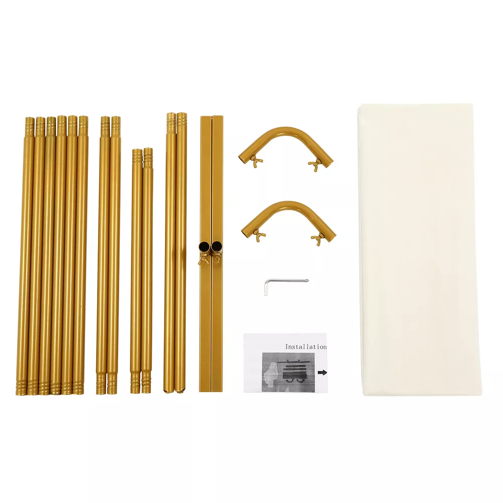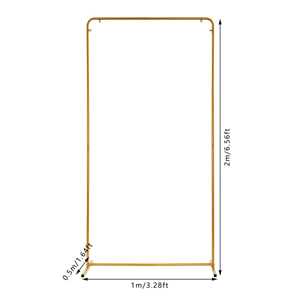 Freestanding Wedding Backdrop Stand Gold&Beige Backdrop Frame With Solid Base Description A successful wedding is not possible without beautiful flowers or balloons. This wedding stand is made of high-quality material with a stable structure, which ensures that your flower arrangement is both stable and layered. Its simple structure and smooth surface make it easy to install and clean. It is an essential decoration for your wedding and will surely bring unforgettable memories of your important celebration! Key Features Sturdy and Durable: Made of high-quality iron with a high-temperature baking paint process, it is hard, wear-resistant, corrosion-resistant, rust-resistant , and not easy to deform, which ensures a long service life. Minimalist Appearance: The simple rectangle, classic gold color, and elegant Beige color can be well integrated into various types of venues, adding flair to dull events and making a unique and refreshing landscape. Good Load Capacity: The 0.75-inch diameter round pipe, high-quality material, and stable structure allow the product to hold up to about 13.23 lbs without worrying about collapsing and breaking when in use. DIY Fun: You can add some lightweight decorations such as balloons, flowers, and garlands (not included) to display as background decorations to brighten up occasions such as weddings, and birthday parties. Effortless Cleaning : Thanks to the smooth surface, simple structure, and open design, you can easily clean it with water and a soft cloth. Simple Assembly: With a simple structure, complete parts, and butterfly bolts, you can assemble this product easily and quickly. Easy to Store and Carry: The product is detachable, so you can easily store it in the warehouse or car trunk without taking up too much space. Good Customer Service: We stand behind all our guests and look forward to assisting you with your purchase. It is our pleasure to answer your confusion and questions. The end of the story between us is not "we sell and you buy". Details Smooth Edge: The rounded and smooth edges not only add to the aesthetics of the product but also improve the safety of use. Solid Base: Two 1.64ft feet and the H-shaped base design increase the contact area between the product and the ground, ensurin g stable placement . Elastic Cloth Cover: It is a good partner of the wedding stand, which can be put on the stand and play the role of background decoration so that you can easily DIY. Application This product is ideal for weddings, baby showers, bridal showers, birthday parties, gardens, photo shoots, photo booths, business events, theme parties, engagement banquets, Valentine's Day, Thanksgiving, Christmas, and other special occasions. Specification Color: Gold, Beige Style: Modern Shape: Rectangle Material: Iron, Elastic Fabric Process: High-temperature Baking Paint Assembly Required: Yes Mounting Type: Freestanding Pipe Diameter: 19mm/ 0.75in Max. Load Capacity: About 6kg/ 13.23 lbs Gross Weight: 3.58kg/ 7.89 lbs Package Size: 52*18.5*7.5 cm/ 20.47*7.28*2.95in Product Size: 1*0.5*2 m/ 3.28*1.64*6.56 ft Package Included 1* Wedding Stand 1* Hexagonal Wrench 1* English Installation Diagram 1* Cloth Cover All Accessories for Installation Notes Please note that decorations such as flowers and balloons are not included in this product. Please allow the slight color difference caused by the shooting light and the 1-3 cm error due to manual measurement, and make sure you do not mind before ordering. Shape Rectangle Process High-temperature Baking Paint Assembly Required Yes Mounting Type Freestanding Pipe Diameter 19mm/ 0.75in Max. Load Capacity About 6kg/ 13.23 lbs Gross Weight 3.58kg/ 7.89 lbs Package Size 52*18.5*7.5 cm/ 20.47*7.28*2.95in Product Size 1*0.5*2 m/ 3.28*1.64*6.56 ft Brand Unbranded Type Backdrop Color Gold&Beige Material Iron, Elastic Fabric Style Modern