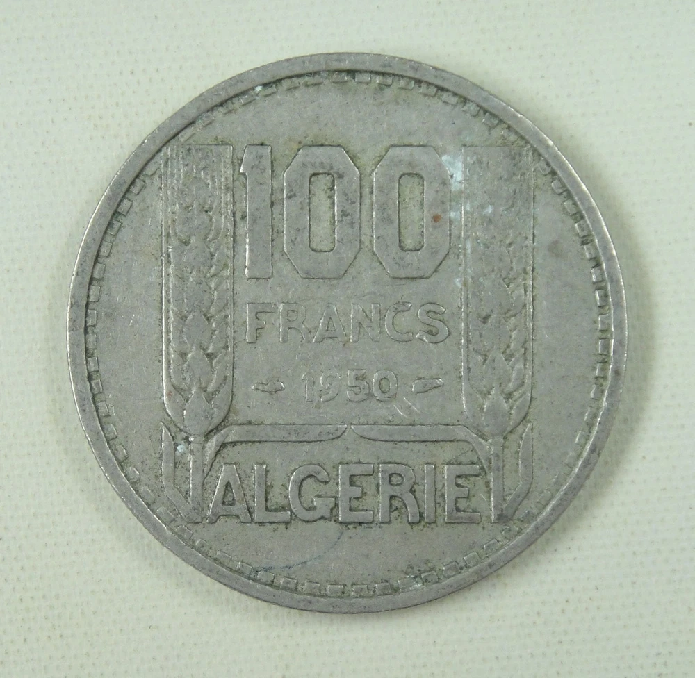 NOW YOU ARE BIDDING ON French Algeria Coin 100 Francs 1950 Diameter: about 30mm We insure the safety of every item. We will ship all items via CHINA POST within 1 business day after the payment is received. We just ship the item to your shipping address on Online Payment. It will take about 15-25 days to arrive for USA and worldwide . We promise that the buyer doesn’t bear any risk on the way, if the package is damaged, lost or stolen on the delivery, we make the full refund or resend same items. We do not want to give you a bad buying experience even when the shipping is out of our control. Buyers who purchased bulk items or multi-items from my store within 3 days, and need to be arranged as combined shipping with charge discounted , p lease make a combined payment. do NOT send individual payments for each item, I will automatic offer a shipping discount. I accept Online Payment and () only. Import duties, taxes and charges are not included in the item price or shipping charges, these charges are the buyer’s responsibility. THANK YOU FOR VIEWING AND HAPPY BIDDING! GOD BLESS !!! Track Page Views With Auctiva's FREE Counter