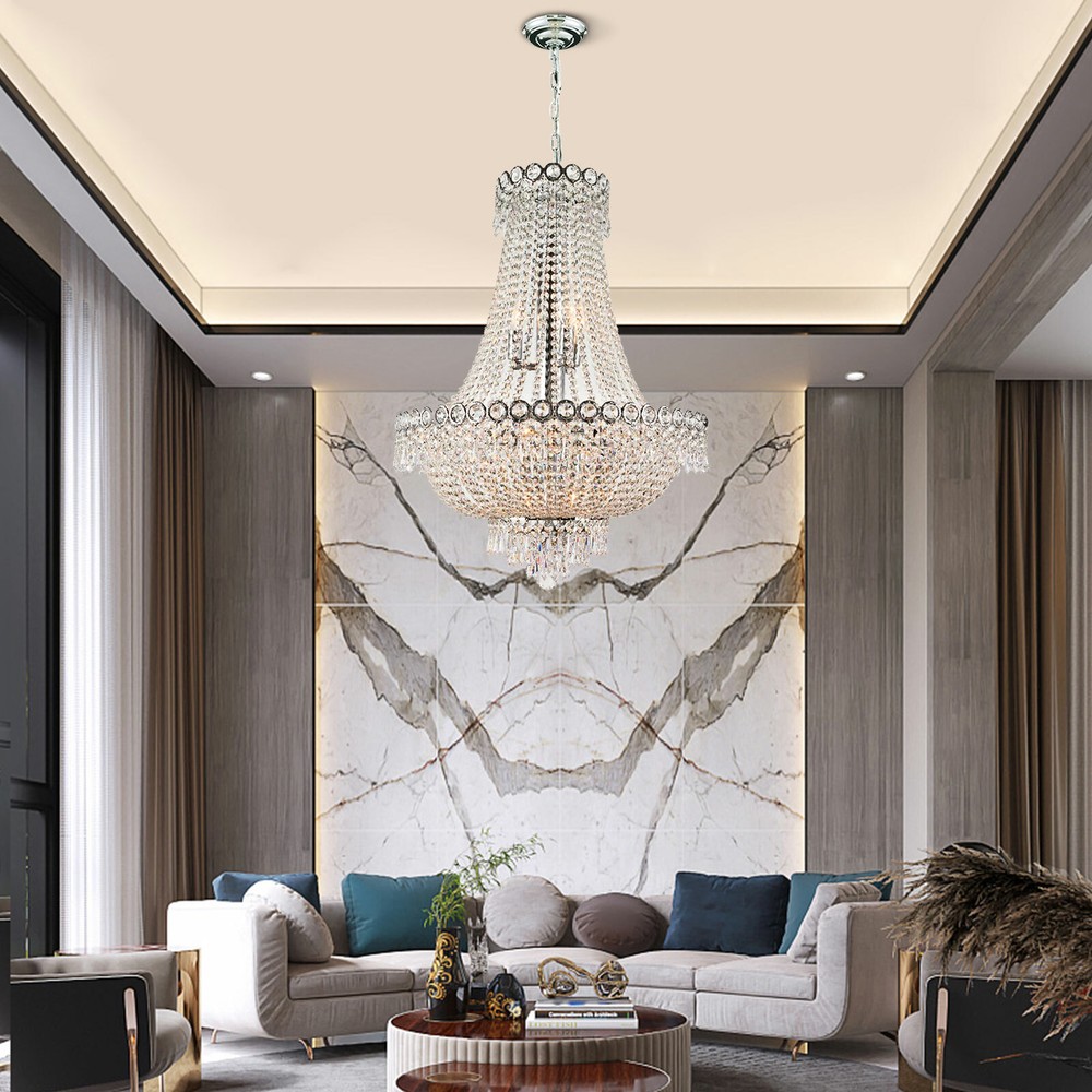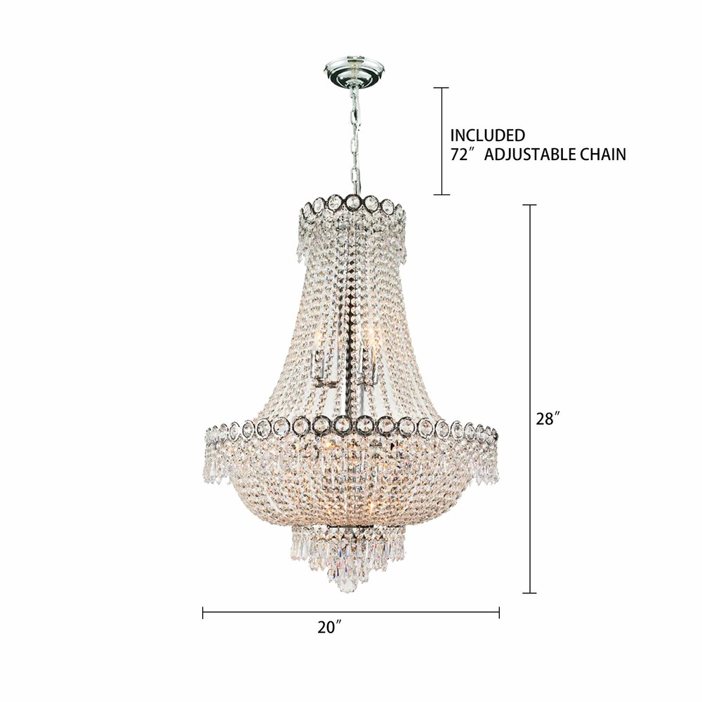 Key Features Great Durability: The frame of this crystal chandelier is made of solid brass, which is more durable and will last for a long time. Elegant Design: With 30% full lead octagonal crystals finely cut and beaded, this elegant crystal chandelier will bring sparkle and glamour to any room. Decoration and Illumination: Lighting is the chandelier's original function. Meanwhile, its modern and simple design can be used to decorate any environment to bring elegance and magnificence. Easy to Install: You can easily install all bead strings because of its simple structure. All bead strings can be installed in the same way. French Empire Crystal Chandelier Modern Hanging Lamp Pendant Light Banquet Hall Description SKU: HG-HCXLST-3488-US Description The crystal chandelier is made of solid brass, which is more durable and can last for a long period. With 30% full lead octagonal crystals finely cut and beaded, this elegant crystal lamp will bring sparkle and glamour to any room. It is widely used in hotel, banquet hall, living room, dining room, or foyer for decoration and illumination. Key Features Great Durability: The frame of this crystal chandelier is made of solid brass, which is more durable and will last for a long time. Elegant Design: With 30% full lead octagonal crystals finely cut and beaded, this elegant crystal chandelier will bring sparkle and glamour to any room. Decoration and Illumination: Lighting is the chandelier's original function. Meanwhile, its modern and simple design can be used to decorate any environment to bring elegance and magnificence. Easy to Install: You can easily install all bead strings because of its simple structure. All bead strings can be installed in the same way. Wide Application: It is widely used in hotel, banquet hall, living room, dining room, or foyer for decoration and illumination. Easy to Clean: Y ou can easily clean it in terms of its smooth surface because it has experienced polishing treatment. High Applicability: The crystal chandelier can adapt to incandescent, LED, halogen, or CFL bulbs with E12 lamp head , which can meet your different requirements for light. Customer Service: If you have any questions, please feel free to contact us, we are willing to answer your questions. Details Adjustable Chain : The chain of the crystal chandelier can be adjusted freely according to the height of different rooms or your different requirements. This chain can be adjusted to a maximum of 72 inches. Staggered and Uneven : The junctions of the different trending crystal chains are connected by larger crystals, which can add layers to the chandelier. Application It is widely used in hotel, banquet hall, living room, dining room, or foyer for decoration and illumination. Specification Diameter: 50cm/20inch Height: 70cm/28inch Adjustable Chain: 182.88cm/72inch Installation 1. This chandelier needs basic assembly. Professional would be highly recommended. 2. If you have any problems, please feel free to contact us. We will reply and solve the problem for you as soon as possible. Package Included 1 X Crystal Chandelier All Accessories for Assembly Notes 1. You should use 12 E12 base bulbs up to 40 watts (not included in the package), or you can use incandescent, LED, halogen, or CFL bulbs. 2. Please make sure the light is securely supported and is disconnected from power when installing. 3. Installing the light bulbs before hanging the crystals can make the installation easier. 4. Please allow the slight color difference caused by the shooting light and 1-3 cm error due to manual measurement, and make sure you do not mind before ordering. Payment Delivery details Terms of sales About us Contact us Payment We accept ebay payment 。 Fees such as import duties, taxes are not included in the item price or shipping costs. These charges are the buyer's responsibility. Delivery details Shipping: 2-9 working days to: USA Terms of sales We maintain high standards of excellence and strive for hundred percent customer satisfaction. Feedback is very important to us. We hope that you contact us immediately before you give neutral or negative feedback, so that we can address your concerns. It is impossible to address issues if we do not know about them! About us Your satis faction is our ultimate goal. We work hard to earn your trust and future business. Our certified technicians have tested each item before shipping. The unit comes with 1 year limited warranty on all manufacturing defects. a) If you receive a defective item, you may return it or ask for a discount. Please contact us within 14 days after you receive the package. b) What you returned must be intact and in its original packaging as re? u. Customer is responsible for shipping costs of the returned item. c) We will cover the cost of shipping back t with the shipping rate indicated in the registration page. We will send you a new unit or refund the full payment you paid. Thank you. Contact us Business Hour Business Hour: Monday To Friday: 8:30 AM to 5:00 PM (Beijing China time) Due to time zones, our reply to your questions may not be immediately. But within above working time, we will reply your email within 24 hours. If it's non-workdays, please kindly be patient and wait till Monday. Please contact us with ebay message. Please feel free to contact us if you have any questions. Monday To Friday: 8:30 AM to 5:00 PM (Beijing China time) Due to time zones, our reply to your questions may not be immediately. But within above working time, we will reply your email within 24 hours. If it's non-workdays, please kindly be patient and wait till Monday. Please contact us with ebay message. Please feel free to contact us if you have any questions. Country/Region of Manufacture Unknown ❤Highlights❤ ❤Premium Material❤Long Service Life❤Quality Service❤ 🔥Feature🔥 🔥High Performance🔥High Safety🔥Great for DIY🔥 ★Features★ ★★★Reliable Quality★★★Easy installation★★★Good 