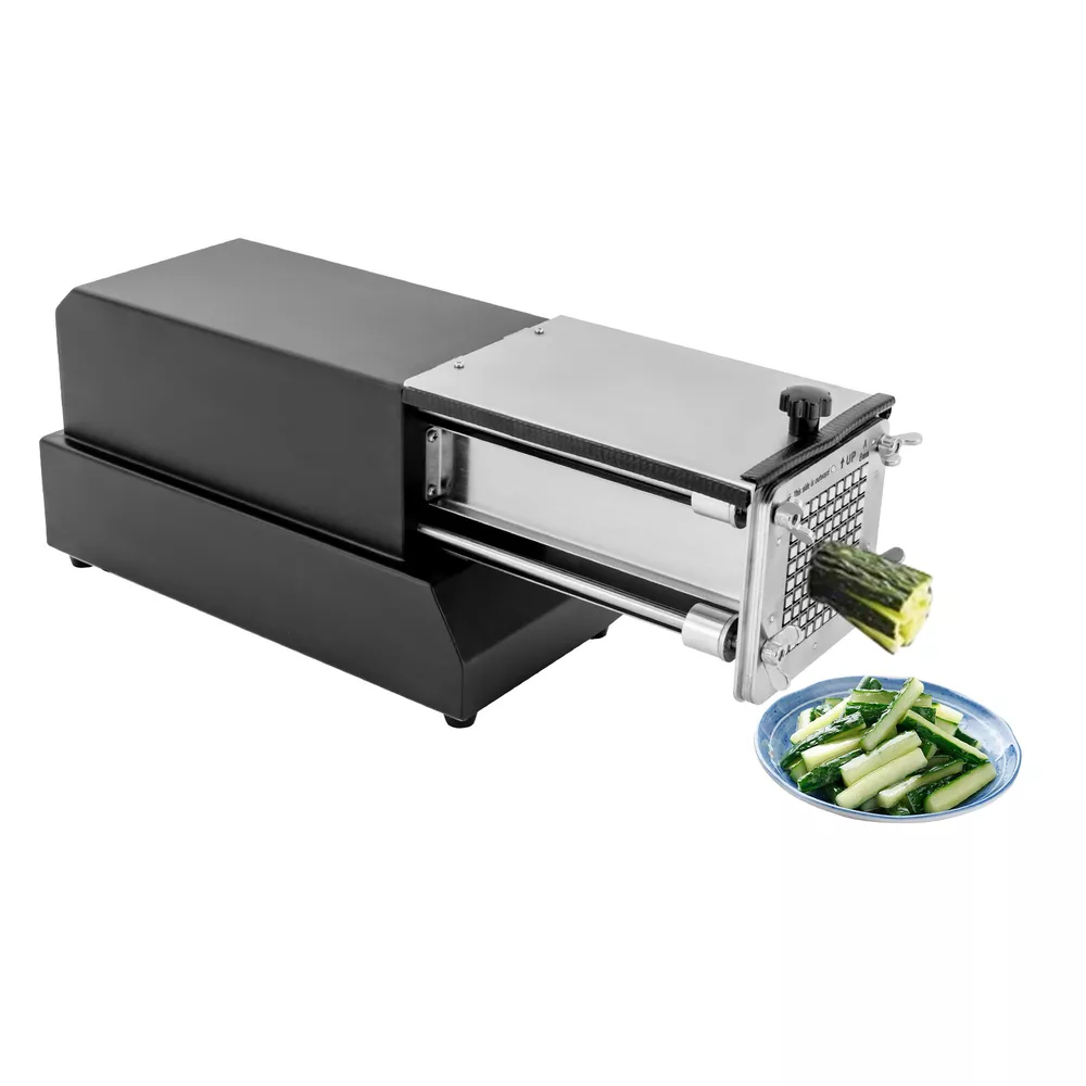 Description Are you worried about your poor knife work, cutting out the uneven thickness of foods, or still worried about manual cutting vegetables laborious and easy to hurt your hands? Then we strongly recommend buying our electric potato cutter to meet your cutting needs and give you efficient and convenient cooking services! Key Features High-quality Material: The entire body, including the blade, is made of stainless steel, which is not only safe and hygienic but has good wear resistance, durability, is not easily deformed, and has a long service life. Good Assistant: The 200W power and 3.32in/s pusher speed enable you to easily cut raw materials into strips or dicings, which will save you time and allow you to enjoy time with friends and family. Intelligent Control: Compared to French Fry Cutter Electric Stainless Steel W/ 2 Blades For Commercial, Home Description Are you worried about your poor knife work, cutting out the uneven thickness of foods, or still worried about manual cutting vegetables laborious and easy to hurt your hands? Then we strongly recommend buying our electric potato cutter to meet your cutting needs and give you efficient and convenient cooking services! Key Features High-quality Material: The entire body, including the blade, is made of stainless steel, which is not only safe and hygienic but has good wear resistance, durability, is not easily deformed, and has a long service life. Good Assistant: The 200W power and 3.32in/s pusher speed enable you to easily cut raw materials into strips or dicings, which will save you time and allow you to enjoy time with friends and family. Intelligent Control: Compared to traditional manual control, you just need to plug in the power cord, and put in the ingredients, through one button to control forward and backward, very time-saving and labor-saving. High Safety: It has an overload protection function that automatically disconnects the machine if it is overheated or overloaded to protect the machine and improve safety in use. Large Capacity: With the capacity of 7.68*3.07*2.76 inch, this cutter is big enough to cut an entire potato, sweet potato and other vegetables, which is suitable for commercial or home use. Easy to Clean: With its smooth surface, removable blade, you can easily and quickly clean it. Only need to clean it with a damp cloth or rinse the blade with water. Spacing-saving: Because of its small size (19.29*6.3*8.11 inch), it can be placed on your kitchen table or in a closet without taking up too much space. Customer Service: We aim to provide quality products and services. If you have any problems, please feel free to contact us. We will reply and solve the problem for you as soon as possible. Details Anti-slip Feet: The bottom of the product has four anti-slip feet, which can effectively prevent it from slipping, and reduce scratches on the desktop caused by machine vibration during use. Spiral Carry Handle: The top of the lid is equipped with a spiral carry handle, which makes it easy for you to lift and close the lid. Control Buttons: You can manually control the forward and backward which is easy to use. Stainless Steel Shield: It has a stainless steel shield added to the top, which helps prevent food splashes and increases the use safety. Multi-size Blade Grids: The product is equipped with multi-size blade grids(1/2", 3/8") to meet your different cutting needs. Application It can cut not only potatoes and French fries but also white radishes, carrots, sweet potatoes, cucumbers, apples, and various other harder vegetables and fruits. And it is suitable for homes, and restaurants to use. How to Replace the Blade 1. Turn off the power. 2. Unscrew the nut counterclockwise. 3. Remove the net blade. 4. Open the lock, and replace the push plate and net blade. 5. Lock the nut back after screwing. How to Use 1. Put a big potato or small potato into the machine. 2. Cover the lid and turn on the power switch. 3. Use the control switch to control forward and backward to cut potato. 4. Fry the potato chips and start to enjoy your perfect french fries! Specification Material: 201&304 Stainless Steel, PVC Color: Black Style: Modern Minimalist Processing Range: Fruits and Vegetables Plug: US Standard Voltage: 110V Power: 200W Frequency: 50/60HZ Blade Shape: Rectangular Operation Mode: Automatic Pusher Speed: 82mm/3.32in/s Single Pusher Stroke Time: 1.95s 2 Size Grid Blades: 12mm, 1/2"; 8mm, 3/8" Vegetable and Fruit Holding Size: 19.5*7.8*7cm/7.68*3.07*2.76 inch Package Size: 56*25*25cm/22*9.8*9.8 inch Product Size: 49*16*20.6cm/19.29*6.3*8.11 inch Gross Weight: 10kg/22 lb Net Weight: 9kg/19.84 lb Package Includes 1* Electric Potato Cutter 1* Power Cord 2* Grid Blades(One is Already Installed) 1* English Manual Notes Due to the strong power of the machine, when cutting small ingredient, it'll be bent. Therefore, it is recommended to use this machine to cut large ingredients such as large potatoes, large sweet potatoes, large carrots, and so on. If the power switch is not on, it is possible that the machine's power cord is not plugged in properly. If the lid is not closed, the machine will not start either for your safety protection. The blade is sharp, pay attention to safety when cleaning, replacing, and storing! Please dry it when stored after cleaning. It is best to hand wash to avoid touching badly, the body should not be immersed in water. Please allow the slight color difference caused by the shooting light and 1-3 cm error due to manual measurement, and make sure you do not mind before ordering. Payment Delivery details Terms of sales About us Contact us Payment We accept ebay payment 。 Fees such as import duties, taxes are not included in the item price or shipping costs. These charges are the buyer's responsibility. Delivery details Shipping: 2-9 working days to: USA Terms of sales We maintain high standards of excellence and strive for hundred percent customer satisfaction. Feedback is very important t