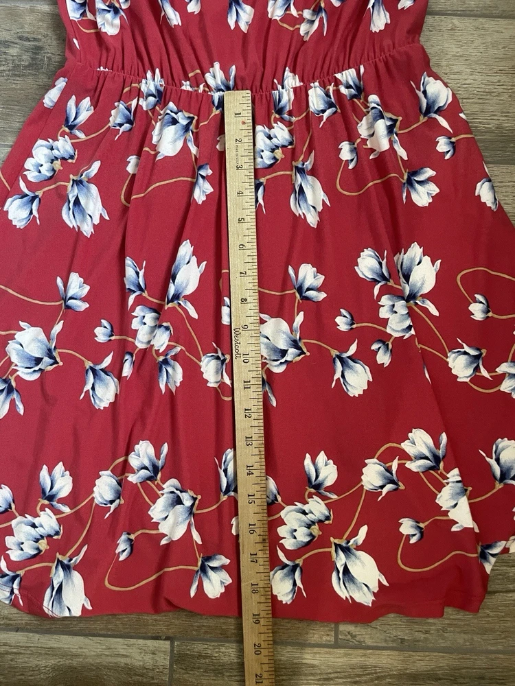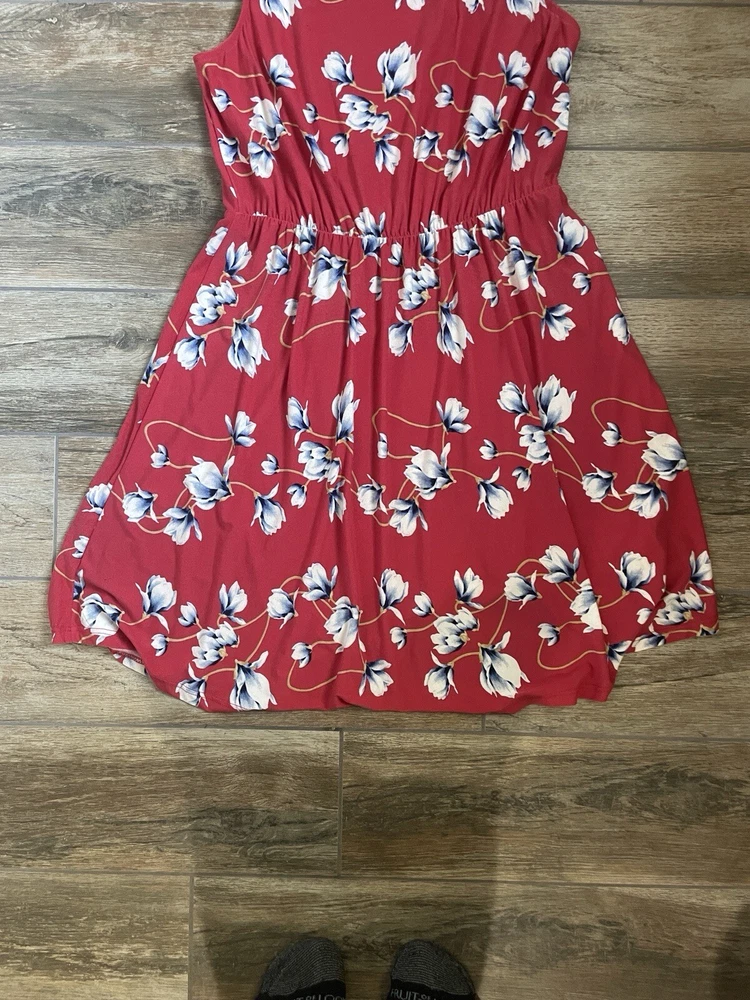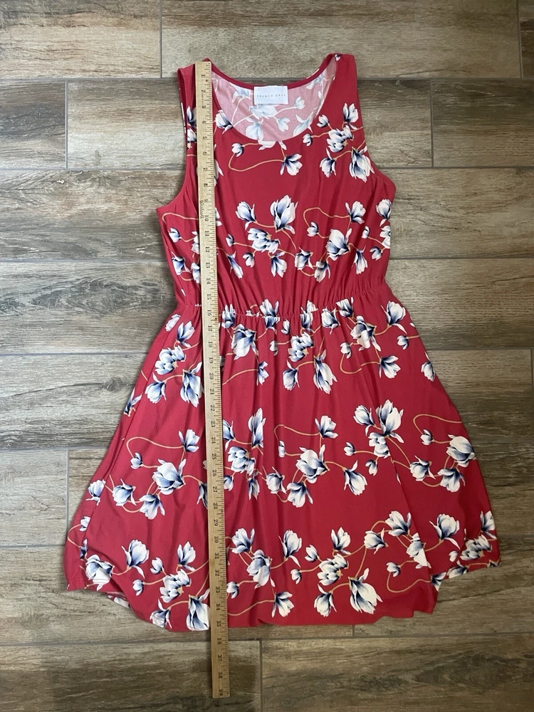 This French Grey Evalynn dress is perfect for any occasion, whether you're traveling, going to a business meeting, or just out for a casual day. The dress features a beautiful floral pattern in shades of red and grey, and is made of a soft and comfortable knit fabric. Size: large