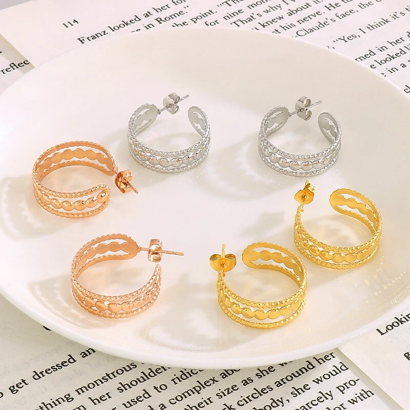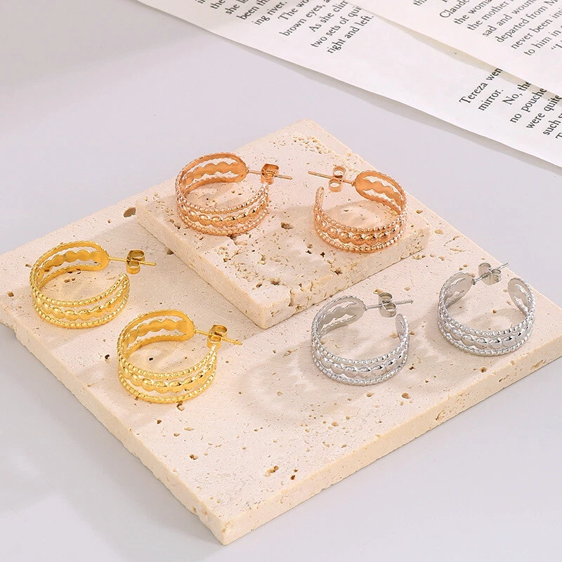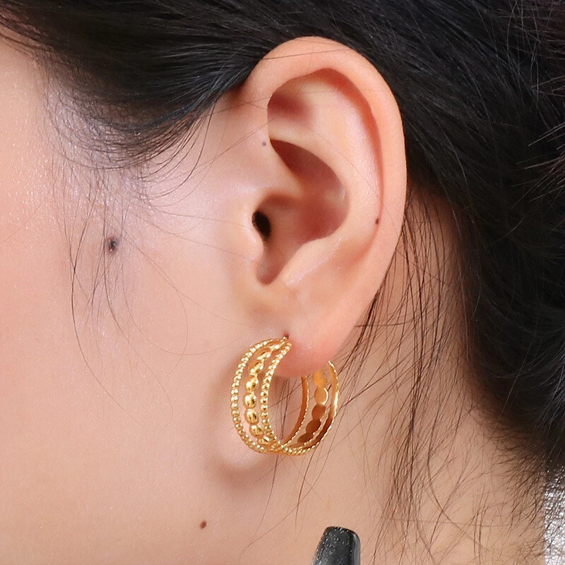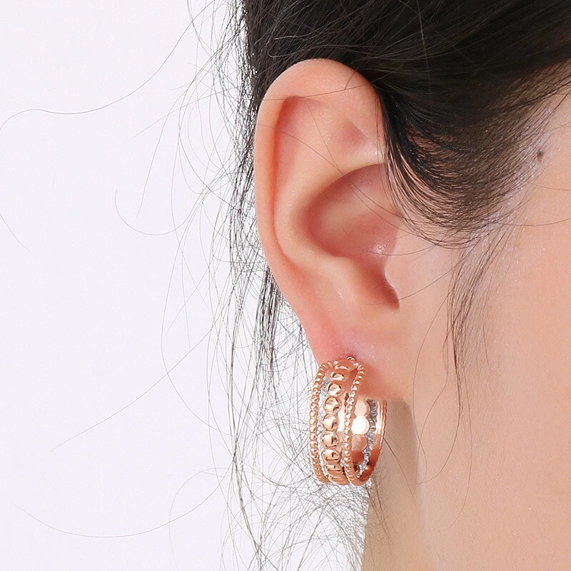 Square Flower Earrings Copper Inlaid Zircon Gold Plated Hollow Out Women Jewelry