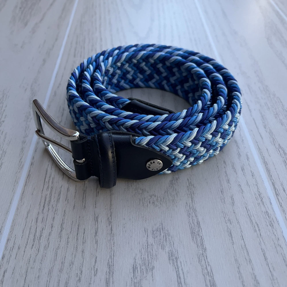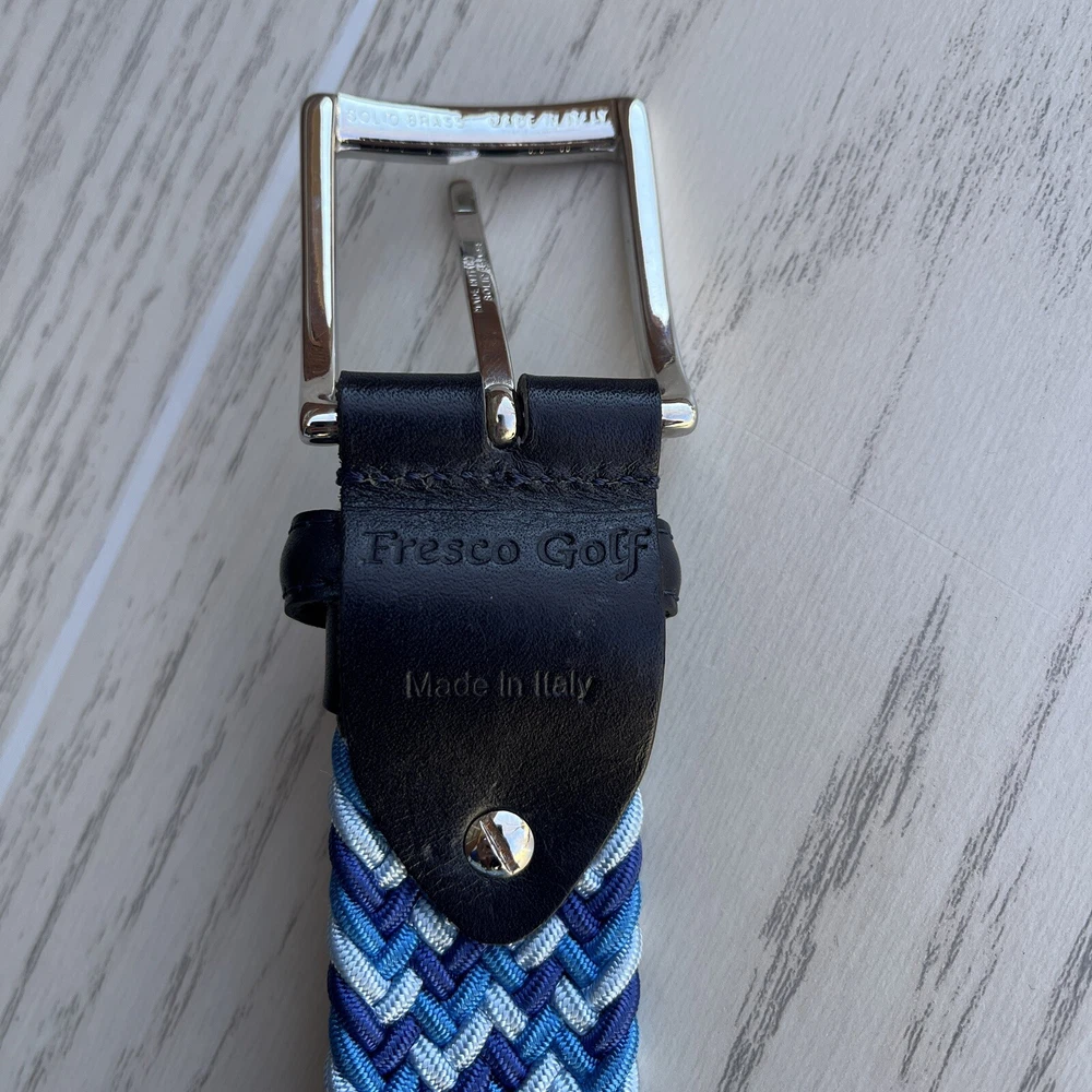 Fresco Golf Mixed Color Blue Belt Solid Brass Buckle Made In Italy