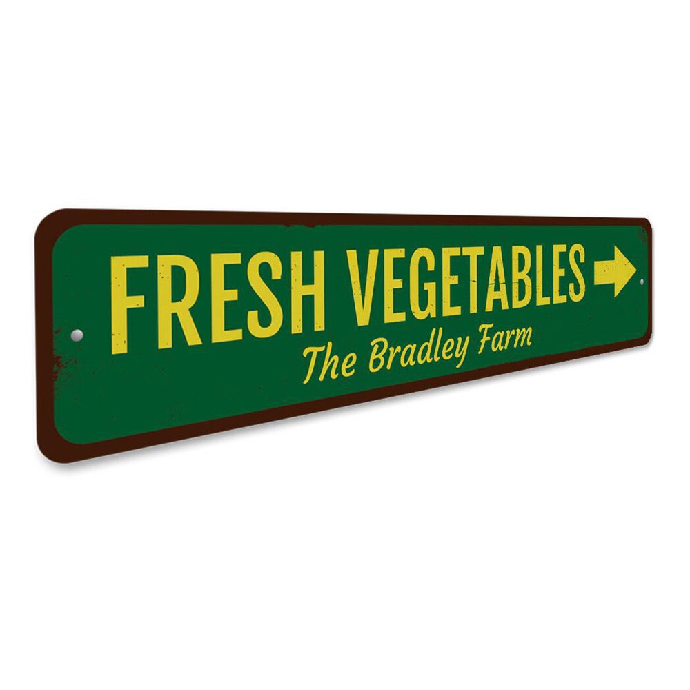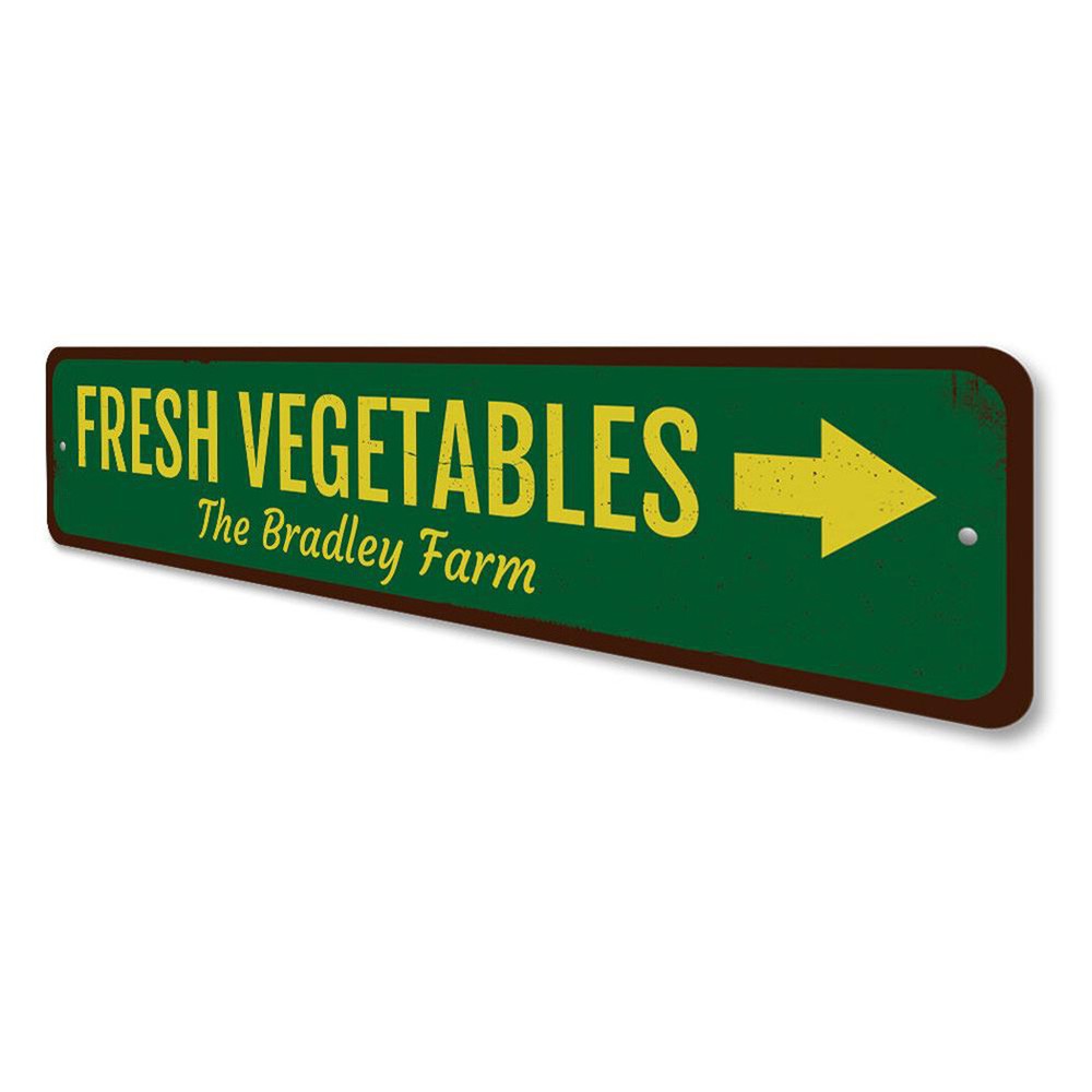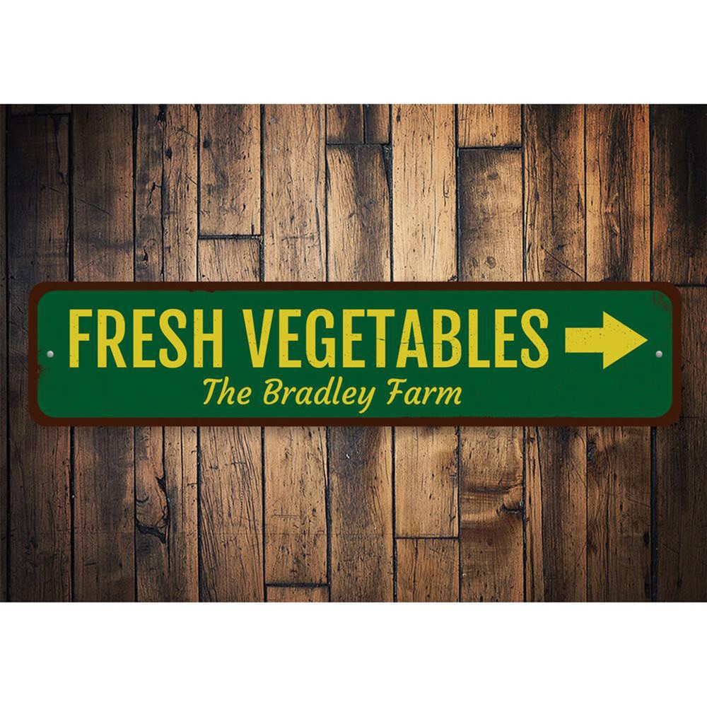 The Lizton Sign Shop Product Description Fresh Vegetables Sign, Personalized Arrow Family Farm Metal Decor Sign **there may be slight variations in color and text spacing, however your sign will be very similar to the image above. Quality Aluminum Street Signs Sign Information Aluminum Brand New Sign Comes with rounded corners and pre-drilled for easy hanging. We use the highest quality materials - 100% USA-made! Great Gift Idea - Our signs truly make a one of a kind gift. Personalize the sign with the text you want to add. Custom text for the sign can be sent to us via email. A BRAND NEW SIGN!! All of our street signs are made of premium materials. The sign itself is made of aluminum and will never rust providing years of enjoyment indoors and outdoors. No Cheap plastic!! The Lizton Sign Shop specializes in quality personalized custom aluminum signs for any occasion. These make the perfect sign for any man cave, office, basement, garage, college dorm, kids bedroom, game room, bar, pub, tavern or countless other places. *Colors may vary slightly from one computer screen to the next but the image should be very close. All content and designs are subject to copyright and may not be reproduced in any form. Payment Methods We would prefer payment to be made through paypal but we also accept all major credit cards. If you select the credit card option please contact us after you make your purchase and we can walk you through the steps to make a secure payment. Return Policies We will accept returns within 30 days of the purchase date. The buyer is responsible for any costs to return the item or items. Returns will only be accepted for items that were damaged in shipping or if we made an error in the manufacturing of your item, i.e. spelling error.