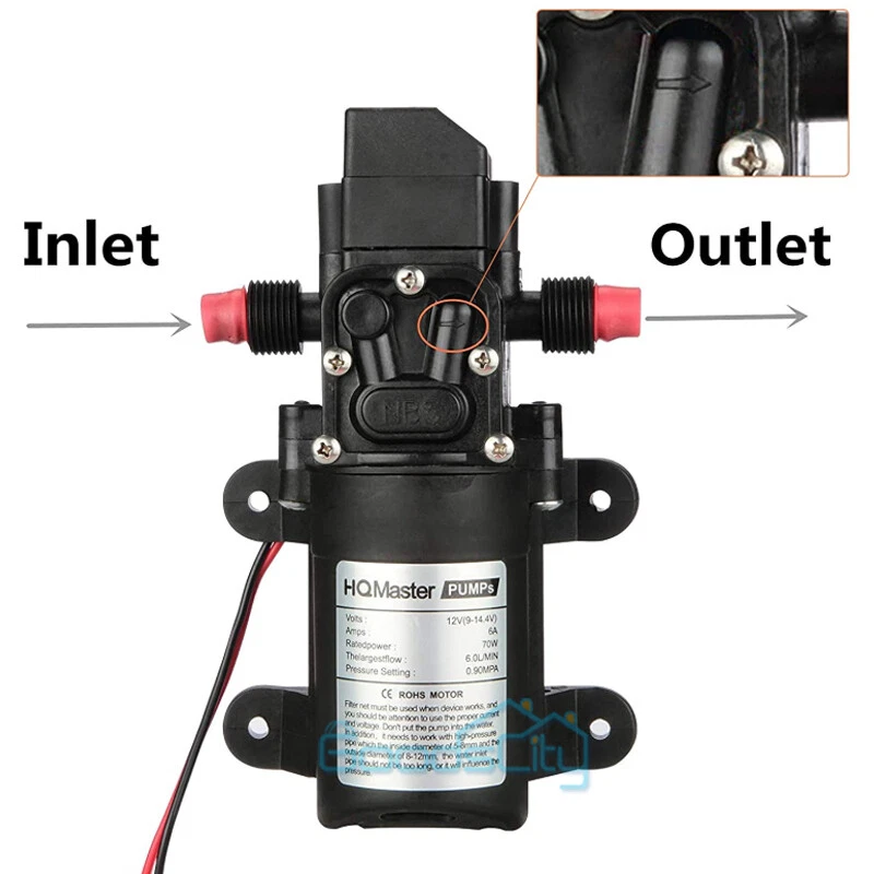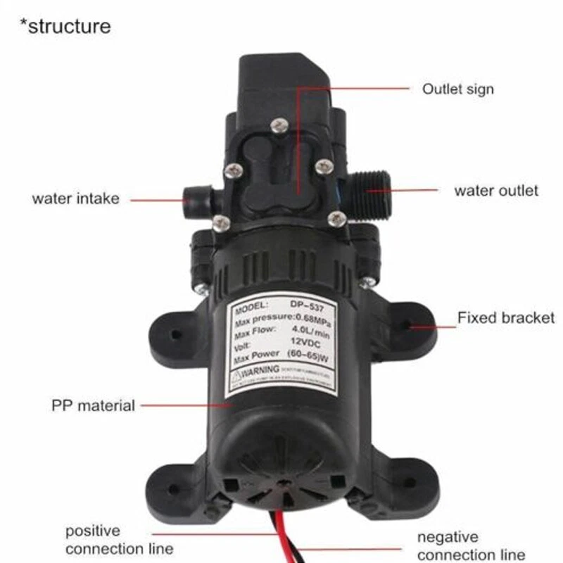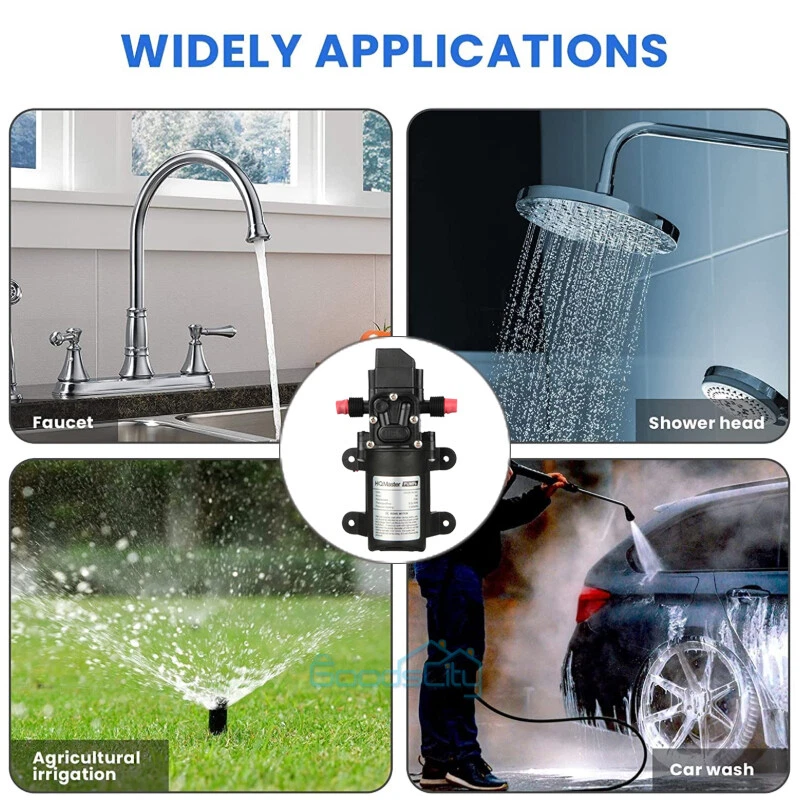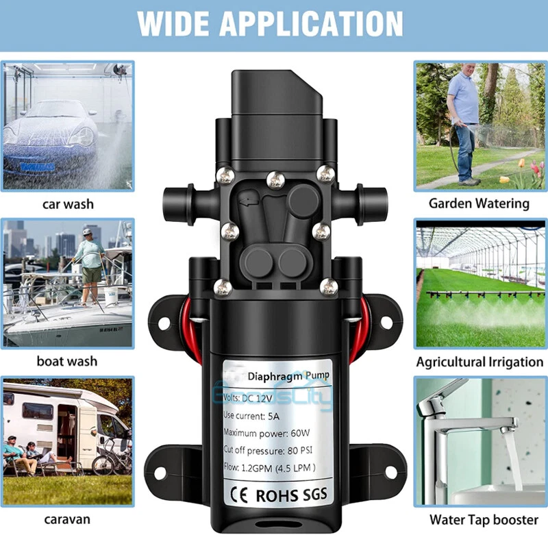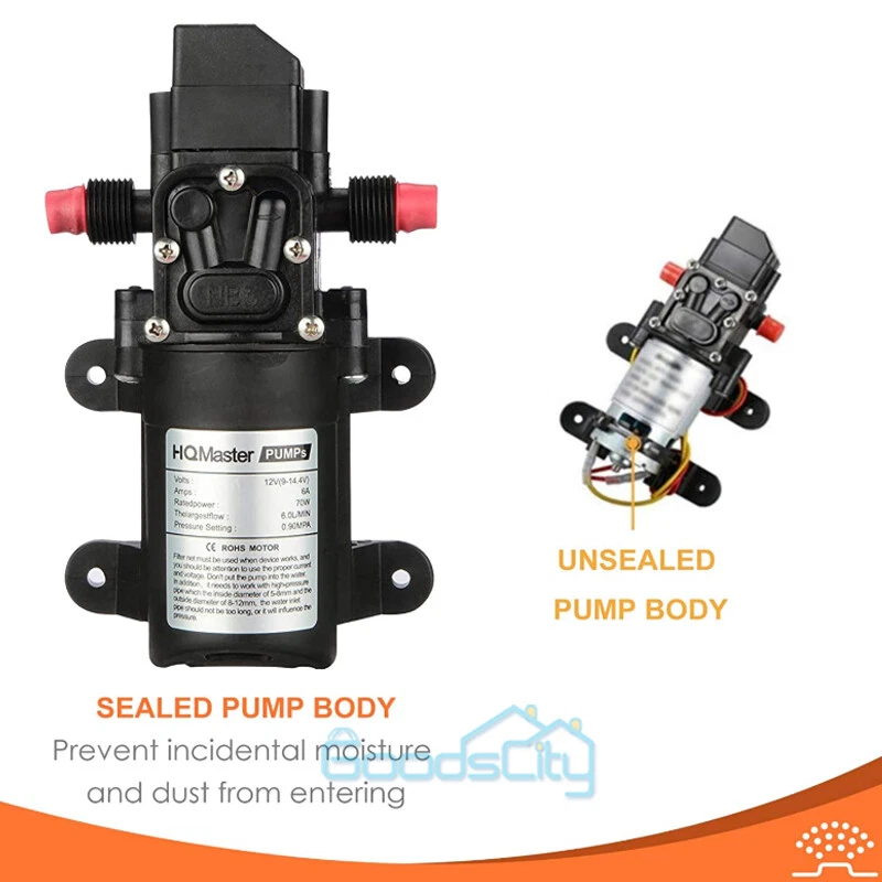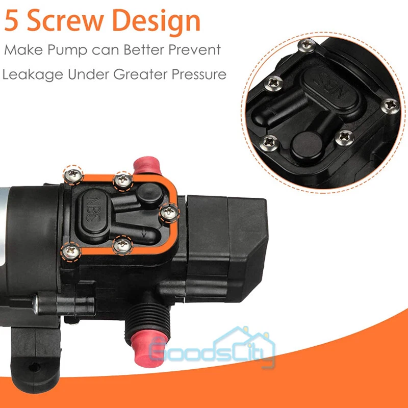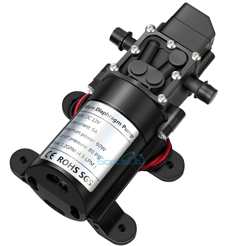 Fresh Water Pump 12V DC 70W 130 PSI Self Priming Pump for Boat/Marine/RV/Yacht Ship within 24 hours. 100% New & Excellent Quality Strictly QC, Each item was fully checked before shipping FREE & FAST Shipping delivery with Tracking Number This 12 volt DC diaphragm self-priming sprayer is a multi-purpose water pump, can be used for Garden and sprinklers, showers, water taps in the boat, caravan, travel trailers, RV or home motor. It is great for a Caravan, Camper, RV, Boat, Marine, Home Garden and Camping. Description: Easy to install. Runs dry without system. Easy connecting system. Totally sealed, high stable pressure. Self priming, silent running, low power consumption. Motor duty cycle will vary with load and ambient temperature. Applications: Car washing machine, the solar energy water, remote control water equipment, some place need to control the switch frequently, somewhere energy saving, etc. Note: This item has built-in test water pressure switch. Water pressure is generally adjusted by the size of the nozzle flow. The adjustable range is 0 to 0.9 mpa. In front of the pump head, there are two lines, which can connect a micro switch to control the water pressure. You need to install this switch by yourself according to your requirements. Connected water inlet pipe length: on the ground 3.5 meters, height 2 meters. This has much to do with your operation. Specification: Volts: DC12V Power (max): 70W Input water pressure: 0.2Mpa Max Output water pressure: 0.9Mpa Pressure setting: 130PSI(Max)(can be adjusted from 75PSI to 130PSI if needed) Largest Flow: 6L/min Protection Valve Type: intelligent valve (with Pressure switch) The absorption process: 2.5 meters Head: 90 meters (water diversion length of pipe) Range: 9 meters Dimension: 16.5cm(L) x 9.6cm(W) x 6cm(H) Package including: 1 x Diaphragm Water Self Priming Pump Return Delivery details Payment FAQ's Contact us Return If you found that the item was damaged when you get it, pls contact us firstly Delivery details We Ship to Payment address ONLY. Payment PayPal accepted. FAQ's None Contact us Welcome to contact us for any question.