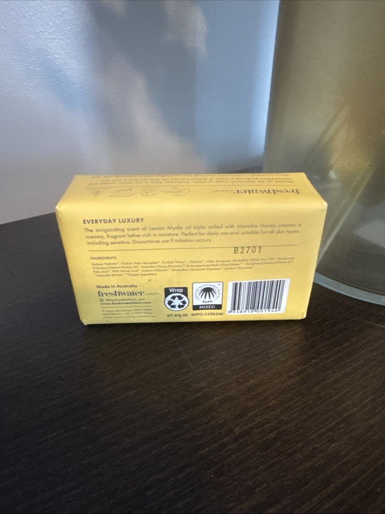 Freshwater Farm Australia Castile Bar Soap Lemon Myrtle Oil + Manuka Honey.