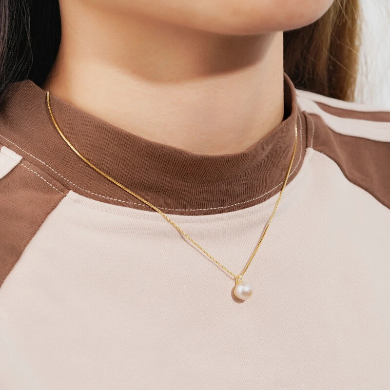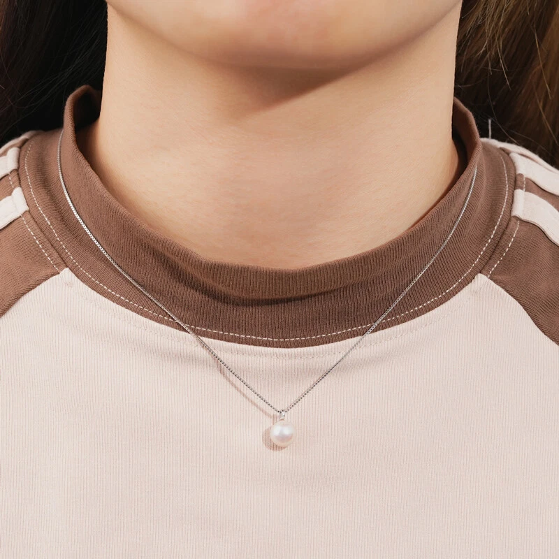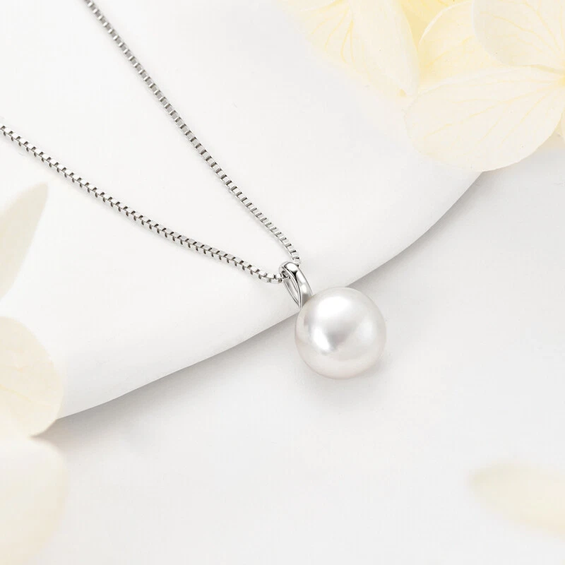 Freshwater Pearl Necklace for Women 925 Sterling Silver 8-9mm Pearl Pendant 20''