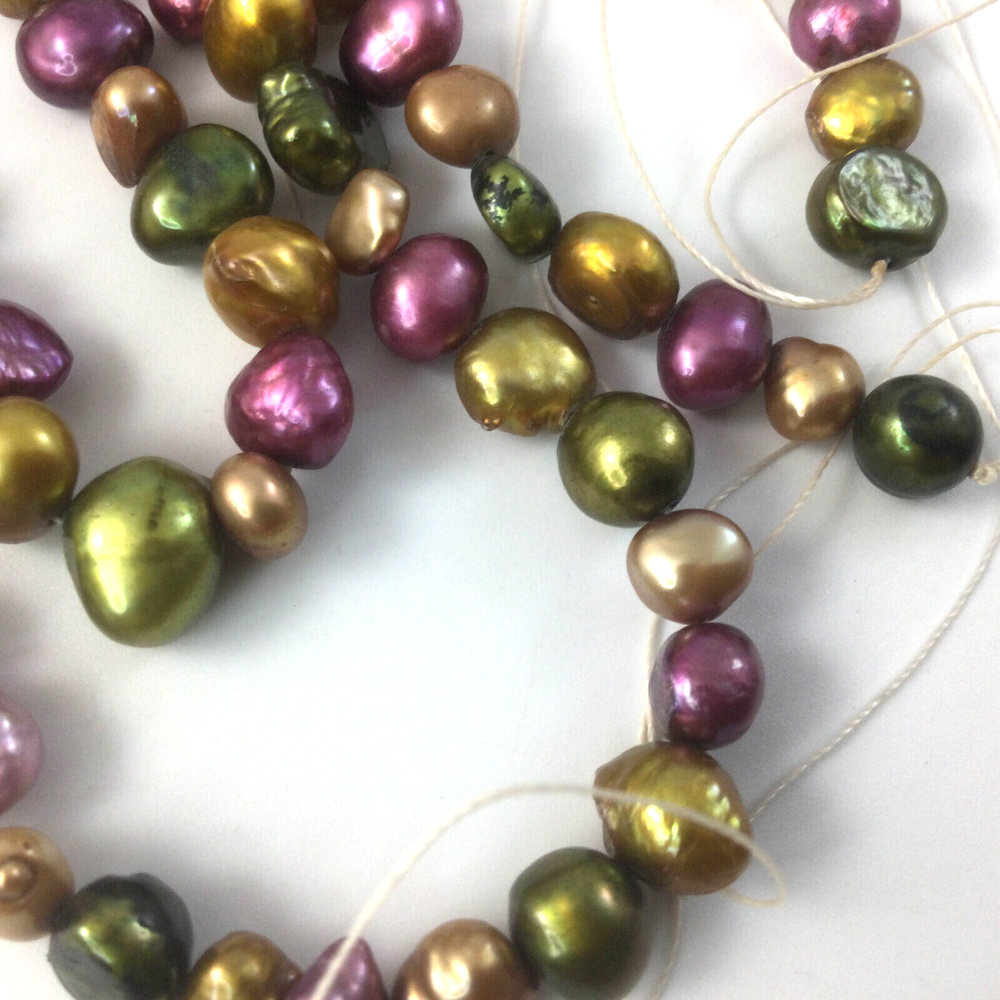 Fresh Water Pearls 2 Strands Pink Purple Gold Green 16" Each.New, never used. InvN/G/10