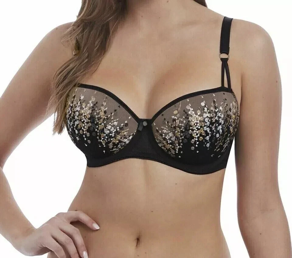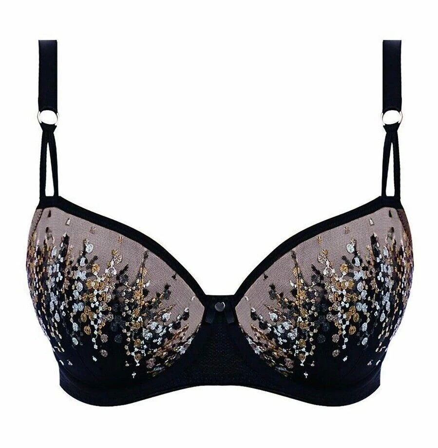 FREYA ASTRID PLUNGE BALCONY BRA BRAND NEW WITHOUT TAGS UNDERWIRED UNPADDED CUP NOIR BLACK & GOLD WITH EMBROIDERED MESH TRIM SIZE 34D - PRODUCT CODE 5501 The inner label has been marked through with pen to prevent store returns This doesn't make it unwearable & I have priced this item to reflect this. Payment Please choose your preferred method of payment at checkout With auctions sales please make payment within 7 days or I reserve the right cancel & re-list the item & open a non-paying bidder case so I can re-claim my selling fees Shipping Orders are usually shipped within 1 day of receiving cleared funds and will be sent via Royal Mail or Hermes depending on the package size. You can buy a quicker service from the drop down at checkout. All packages are scanned in on delivery so all items are completely tracked, Please check my listing for any holiday messages, as when away posting will be delayed Returns If you wish to return your item, please open a return case & you'll be provided with address. P lease note: buyer is responsible for postage costs. All goods are checked t horoughly before sending, so I can be sure your item will be in described condition