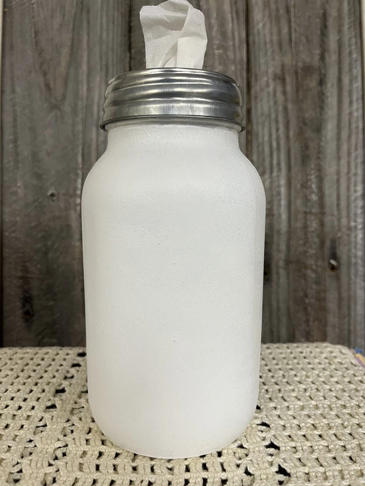 This unique glass jar tissue holder is chalk painted in creamy Cottage White and features a cute Frida Kahlo Cat image decoupaged for lasting beauty. The jar comes with a dispenser lid and tissues, making it a functional and stylish addition to any home décor. Standing at approx. 7", The jar is handmade in the United States in Milton, Florida by Meant To Bee Creative… making it a special addition to any shabby chic collection! Thanks for looking and have a Magical Day!