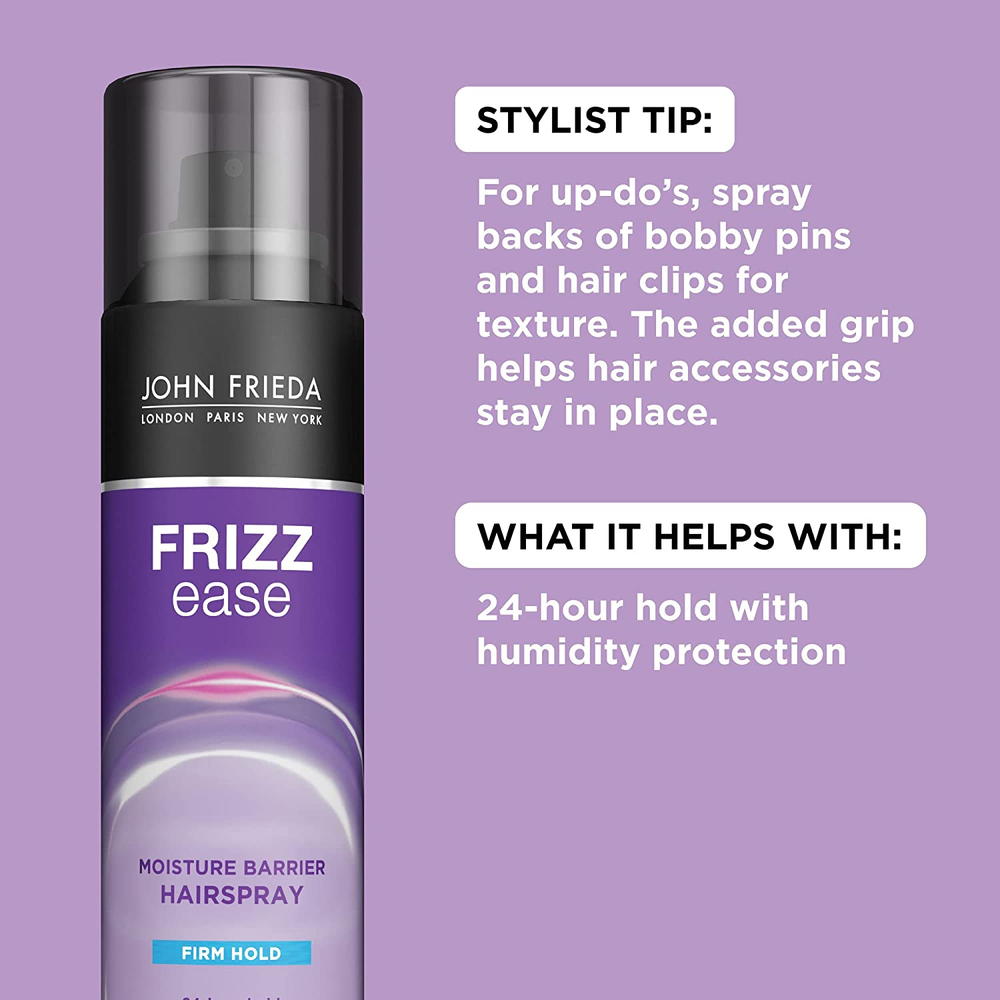 Business is our speciality NEW Frizz Ease Moisture Barrier Hairspray, Firm Hold Hairspray, Seals Out Moisture, Blocks Frizz, Protects against Heat, and Keeps Hair Straight with Long-Lasting Hold, 12 Oz, Pack of 2 FEATURES SMOOTH YOUR FRIZZY HAIR - John Frieda Moisture Barrier Hairspray helps to block out weather-induced frizz by repelling humidity for up to 24 hours FORMULATED FOR INTENSE CONDITIONS - Featuring a firm hold, our Frizz Ease Hairspray will help prevent your style from falling in the rain or shine BOOSTING SHINE FOR ANY HAIR TYPE - Best used as a finishing spray, our quick drying hairspray will give you an instant shine SALON QUALITY - Combine with John Frieda Frizz Ease Shampoo and Conditioner for frizz fighting results from wild, unmanageable hair LONG LASTING FRIZZ CONTROL - Combine with John Frieda Frizz Ease Shampoo and Conditioner for frizz fighting results from curly, dry, damaged, and unmanageable hair John Frieda Frizz Ease Moisture Barrier Firm Hold Anti Frizz Hairspray locks in style, but protects from humidity for up to 24 hours. This quick-drying, strong-hold hairspray is dispensed in a firm mist to help create a solid barrier around hair, sealing out style-ruining moisture while keeping your locks frizz-free and in place. It dries quickly, boosts shine, and has a lightweight texture. Help keep your hair protected, rain or shine. Heat protectant spray for curly, frizzy hair detangles and straightens for optimal styling. This frizz-resistant, texture spray will leave your hair with a sleek, long lasting shine. Carefully formulated by Kao USA to fight dry, damaged hair by creating a humidity resistant barrier around frizzy hair to protect against unwanted frizz. Satisfaction Guaranteed. Limitations may apply. Item model number 27952 Package Dimensions 8.98 x 4.8 x 2.44 inches; 1.81 Pounds Style Anti-Humidity Hairspray Scent Oriental, Lemon, Woody Country of Origin USA Product Benefits function(f) {var _np=(window.P._namespace("DetailPageProductOverviewTemplatesJava"));if(_np.guardFatal){_np.guardFatal(f)(_np);}else{f(_np);}}(function(P) { P.when('A').execute(function(A){ A.on('a:truncate:po-attribute-truncate-0:updated', function(data) { var isTruncated = !data.truncateInstance.getIfTextFits(); var seeMoreElement = document.getElementById('po-attribute-see-more-id-0'); if(seeMoreElement) { seeMoreElement.style.display = isTruncated ? '' : 'none'; } }) }); })); Provides long-lasting frizz control and humidity protection, helping to maintain your style in various weather conditions See more Liquid Volume 12 Fluid Ounces Item Form Liquid Hair Type wavy, curly, coily Size 12 Ounce (Pack of 2) 4.8 inches x 8.98 inches x 2.44 inches. Weight: 1.81 lb Ask us anyhting Free shipping PAYMENT We accept all payments via Ebay using Credit Cards , PAYPAL , Apple Pay and many others SHIPPING We are always working hard to ensure your package arrives as soon as possible. Please understand that some factors like weather, high postal traffic, and the performance of shipping companies are outside of our control. DELIVERY & RETURN POLICY We offer a 30-Day Return Policy on items in which you are not completely satisfied with. You have the option of a full-refund or an exchange of the item. No returns are available on items shipped outside of the USA.