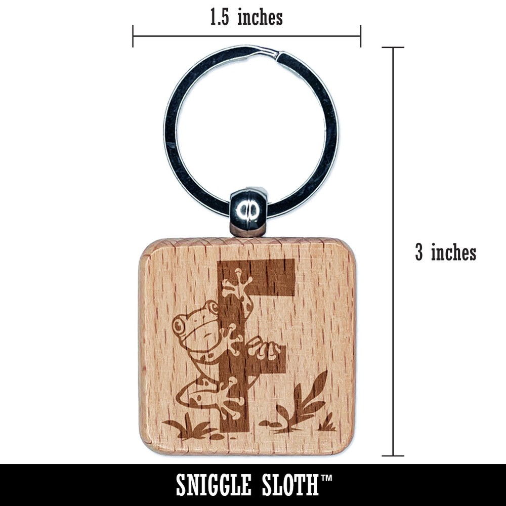 Frog Engraved Wooden Animal Alphabet Letter F Keychain Charm Tag