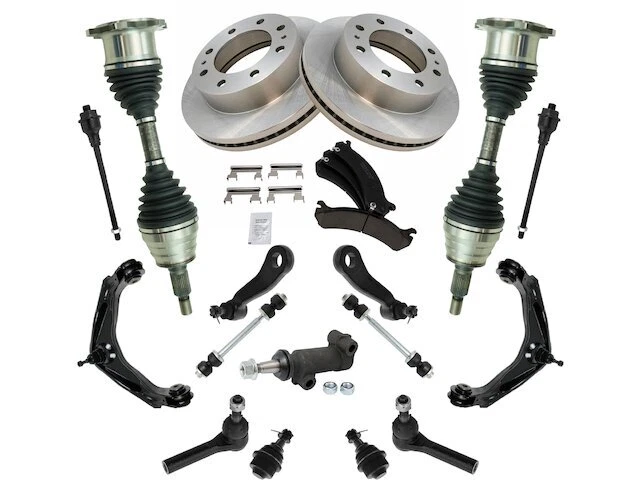 Front Brake Pad Rotor Axle Wheel Hub Control Arm Kit fits 12XTNW Front Brake Pad Rotor Axle Wheel Hub Control Arm Kit fits 12XTNW Position: Front Brand: TRQ Brake Pad Rotor Axle Wheel Hub Control Arm Kit Condition: New Product Description Notes: 20 Piece Steering, Suspension, & Brake Kit -- with 8 Lug Wheels Features: Replacement Brake Kits Features & Benefits Product Specifications Wheel Lug Count: 8 Lug Package Contents: (2) Front Sway Bar Links; (2) Front Outer Tie Rods; (2) Front Inner Tie Rods; (2) Front Lower Ball Joints; (2) Front Wheel Bearing & Hub Assemblies; (1) Pitman Arm; (1) Idler Arm; (2) Front Upper Control Arms with Ball Joints; (2) Front Brake Rotors; (2) Front CV Axle Assemblies; (1) Front Ceramic Brake Pad Set with Contact Point Grease & Hardware; (1) Idler Arm Bracket Assembly Detailed Applications Years Vehicle Sub Model 2007 GMC Sierra 1500 HD Classic 4WD Warranty Coverage Policy 12 Month Warranty 30 Day Return Policy Return shipping paid by: Buyer Item must be returned within: 30 Days Refund will be given as: Money Back DO NOT SEND RETURNS BACK WITHOUT A VALID RMA NUMBER If you have an issue after receiving your part, please email us directly through eBay