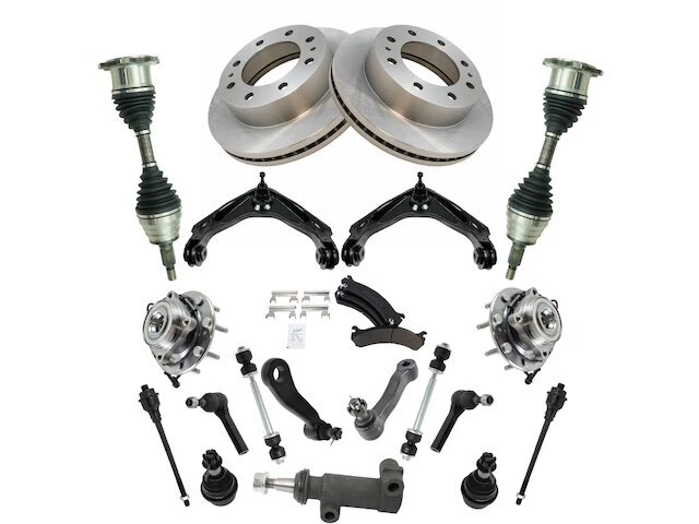 Front Brake Pad Rotor Axle Wheel Hub Control Arm Kit fits Silverado 3500 46BCKB Front Brake Pad Rotor Axle Wheel Hub Control Arm Kit fits Silverado 3500 46BCKB Position: Front Brand: TRQ Brake Pad Rotor Axle Wheel Hub Control Arm Kit Condition: New Product Description Notes: 20 Piece Steering, Suspension, & Brake Kit Features: Replacement Brake Kits Features & Benefits Product Specifications Wheel Lug Count: 8 Lug Package Contents: (2) Front Sway Bar Links; (2) Front Outer Tie Rods; (2) Front Inner Tie Rods; (2) Front Lower Ball Joints; (2) Front Wheel Bearing & Hub Assemblies; (1) Pitman Arm; (1) Idler Arm; (2) Front Upper Control Arms with Ball Joints; (2) Front Brake Rotors; (2) Front CV Axle Assemblies; (1) Front Semi-Metallic Brake Pad Set with Contact Point Grease & Hardware; (1) Idler Arm Bracket Assembly Detailed Applications Years Vehicle Sub Model 2001-2003 Chevrolet Silverado 3500 4WD Years Vehicle Sub Model Fitment Notes: with Dual Rear Wheels (DRW) 2004-2006 Chevrolet Silverado 3500 4WD Warranty Coverage Policy 12 Month Warranty 30 Day Return Policy Return shipping paid by: Buyer Item must be returned within: 30 Days Refund will be given as: Money Back DO NOT SEND RETURNS BACK WITHOUT A VALID RMA NUMBER If you have an issue after receiving your part, please email us directly through eBay