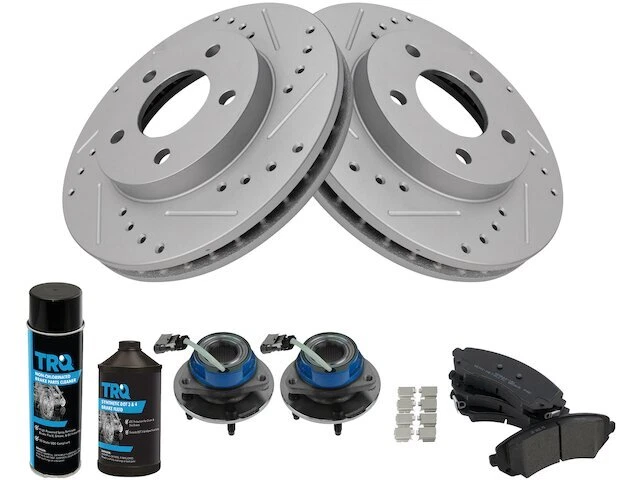 Front Brake Pad and Rotor and Wheel Hub Kit fits Aztek 2001-2005 FWD 75MWTP Front Brake Pad and Rotor and Wheel Hub Kit fits Aztek 2001-2005 FWD 75MWTP Position: Front Brand: TRQ Brake Pad and Rotor and Wheel Hub Kit Condition: New Product Description Notes: 6 Piece Performance Brake Pad & Rotor Kit Features: Semi-Metallic Improved Stopping Power: Cross-drilled slotted to reduce brake fade Longer Lasting: True non-interference vane design for optimized cooling Positive Molded: Less dust resulting in cleaner wheels Multi-Layer Shim: Reduced noise and vibration Direct Replacement: No modifications necessary Product Specifications Coating: Premium G-Coated Grade Type: Performance Type: Performance Surface Type: Slotted X Drilled Package Contents: (2) Front Wheel Bearing & Hub Assemblies; (1) 12 oz DOT 3 & 4 Brake Fluid; (1) 13 oz Non-Chlorinated 50 State Formula Brake Cleaner; (1) Front Semi-Metallic Brake Pad Set with Contact Point Grease & Hardware; (2) Front G-Coated Performance Brake Rotors Detailed Applications Years Vehicle Sub Model 2001-2002 Pontiac Aztek FWD Years Vehicle Sub Model Fitment Notes: with ABS Brakes 2003-2005 Pontiac Aztek FWD Warranty Coverage Policy 12 Month Warranty 30 Day Return Policy Return shipping paid by: Buyer Item must be returned within: 30 Days Refund will be given as: Money Back DO NOT SEND RETURNS BACK WITHOUT A VALID RMA NUMBER If you have an issue after receiving your part, please email us directly through eBay