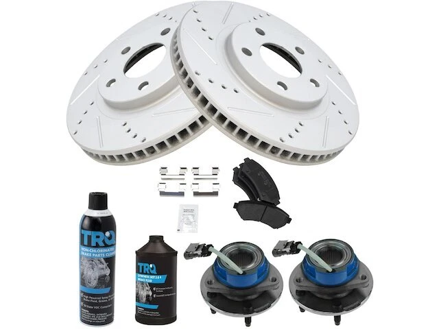 Front Brake Pad and Rotor and Wheel Hub Kit fits Bonneville 2000-2003 24YNFZ Front Brake Pad and Rotor and Wheel Hub Kit fits Bonneville 2000-2003 24YNFZ Position: Front Brand: TRQ Brake Pad and Rotor and Wheel Hub Kit Condition: New Product Description Notes: Brake Pad & Rotor Kit -- with ABS Brakes Features: Semi-Metallic Improved Stopping Power: Cross-drilled slotted to reduce brake fade Longer Lasting: True non-interference vane design for optimized cooling Positive Molded: Less dust resulting in cleaner wheels Multi-Layer Shim: Reduced noise and vibration Direct Replacement: No modifications necessary Product Specifications Coating: Premium G-Coated Type: Performance Package Contents: (2) Front Wheel Bearing & Hub Assemblies; (1) 12 oz DOT 3 & 4 Brake Fluid; (1) 13 oz Non-Chlorinated 50 State Formula Brake Cleaner; (1) Front Semi-Metallic Brake Pad Set with Contact Point Grease & Hardware; (2) Front G-Coated Performance Brake Rotors Detailed Applications Years Vehicle Sub Model 2000-2003 Pontiac Bonneville SSEi 2000-2003 Pontiac Bonneville SLE Warranty Coverage Policy 12 Month Warranty 30 Day Return Policy Return shipping paid by: Buyer Item must be returned within: 30 Days Refund will be given as: Money Back DO NOT SEND RETURNS BACK WITHOUT A VALID RMA NUMBER If you have an issue after receiving your part, please email us directly through eBay