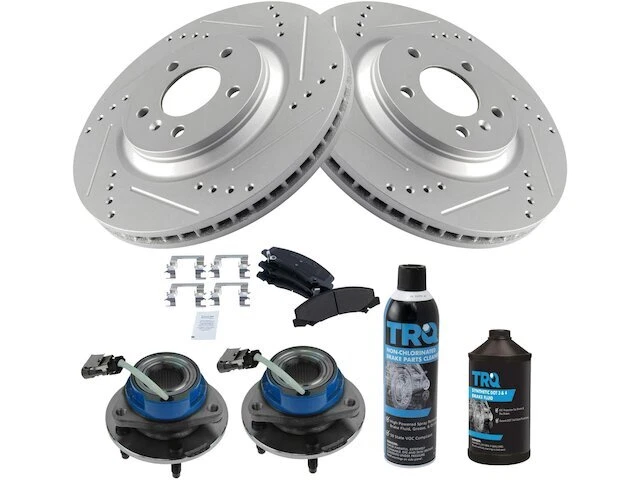 Front Brake Pad and Rotor and Wheel Hub Kit fits Chevy Impala 2012-2013 15QMYS Front Brake Pad and Rotor and Wheel Hub Kit fits Chevy Impala 2012-2013 15QMYS Position: Front Brand: TRQ Brake Pad and Rotor and Wheel Hub Kit Condition: New Product Description Notes: Brake Pad & Rotor Kit -- with 12.72 in. (323mm) Diameter Front Rotors Features: Semi-Metallic Improved Stopping Power: Cross-drilled slotted to reduce brake fade Longer Lasting: True non-interference vane design for optimized cooling Positive Molded: Less dust resulting in cleaner wheels Multi-Layer Shim: Reduced noise and vibration Direct Replacement: No modifications necessary Product Specifications Coating: Premium G-Coated Type: Performance Package Contents: (2) Front Wheel Bearing & Hub Assemblies; (1) 12 oz DOT 3 & 4 Brake Fluid; (1) 13 oz Non-Chlorinated 50 State Formula Brake Cleaner; (1) Front Semi-Metallic Brake Pad Set with Contact Point Grease & Hardware; (2) Front G-Coated Performance Brake Rotors Detailed Applications Years Vehicle 2012-2013 Chevrolet Impala Warranty Coverage Policy 12 Month Warranty 30 Day Return Policy Return shipping paid by: Buyer Item must be returned within: 30 Days Refund will be given as: Money Back DO NOT SEND RETURNS BACK WITHOUT A VALID RMA NUMBER If you have an issue after receiving your part, please email us directly through eBay