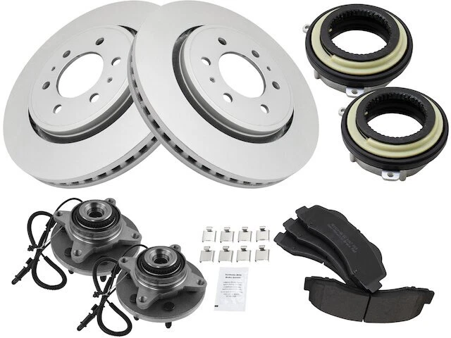 Front Brake Pad and Rotor and Wheel Hub Kit fits Expedition 2011-2014 4WD 69ZNYT Front Brake Pad and Rotor and Wheel Hub Kit fits Expedition 2011-2014 4WD 69ZNYT Position: Front Brand: TRQ Brake Pad and Rotor and Wheel Hub Kit Condition: New Product Description Notes: Semi-Metallic 7 Piece Brake Pad & Rotor Kit Features: Semi-Metallic Positive Molded: Less dust resulting in clean wheels Electrostatic Coated: Long-lasting rust protection G3000 Casting Alloy: Reduced noise and improved wear resistance Application Specific Design: Extended service life, no modifications Product Specifications Coating: Premium G-Coated Package Contents: (2) Front Wheel Bearing & Hub Assemblies; (2) Front Auto-Locking Hub Actuators; (1) Front Semi-Metallic Brake Pad Set with Contact Point Grease & Hardware; (2) Front G-Coated Brake Rotors Detailed Applications Years Vehicle Sub Model 2011-2014 Ford Expedition 4WD Warranty Coverage Policy 12 Month Warranty 30 Day Return Policy Return shipping paid by: Buyer Item must be returned within: 30 Days Refund will be given as: Money Back DO NOT SEND RETURNS BACK WITHOUT A VALID RMA NUMBER If you have an issue after receiving your part, please email us directly through eBay