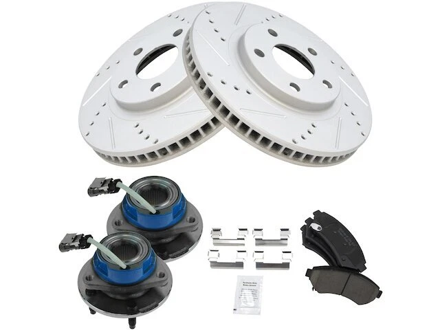 Front Brake Pad and Rotor and Wheel Hub Kit fits Monte Carlo 2000-2005 48CWWM Front Brake Pad and Rotor and Wheel Hub Kit fits Monte Carlo 2000-2005 48CWWM Position: Front Brand: TRQ Brake Pad and Rotor and Wheel Hub Kit Condition: New Product Description Notes: Ceramic Performance Brake Pad & Rotor Kit with Wheel Bearings -- with ABS Brakes Features: Ceramic Improved Stopping Power: Cross-drilled slotted to reduce brake fade Longer Lasting: True non-interference vane design for optimized cooling Positive Molded: Less dust resulting in cleaner wheels Multi-Layer Shim: Reduced noise and vibration Direct Replacement: No modifications necessary Product Specifications Wheel Lug Count: 5 Lug Coating: Premium G-Coated Grade Type: Performance Type: Performance Surface Type: Slotted X Drilled Package Contents: (2) Front Wheel Bearing & Hub Assemblies; (1) Front Ceramic Brake Pad Set with Contact Point Grease & Hardware; (2) Front G-Coated Performance Brake Rotors Detailed Applications Years Vehicle 2000-2004 Chevrolet Monte Carlo Years Vehicle Fitment Notes: RPO Code JL9 (Power 4 Wheel ABS Disc Brakes); RPO Code JB9 (Light Duty Brakes) 2005 Chevrolet Monte Carlo Warranty Coverage Policy 12 Month Warranty 30 Day Return Policy Return shipping paid by: Buyer Item must be returned within: 30 Days Refund will be given as: Money Back DO NOT SEND RETURNS BACK WITHOUT A VALID RMA NUMBER If you have an issue after receiving your part, please email us directly through eBay