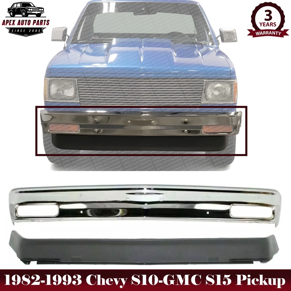 eBay Welcome to APEX AUTO PARTS Store Home About Us Feedback Add To Favorites New Arrivals Ending Soon Contact Us Front Bumper Chrome + Lower Valance For 1982-1993 Chevy S10 / GMC S15 Pickup Product Description WARNING : This product can expose you to chemical which is known to the State of California to cause cancer and birth defects or other reproductive harm. For more information go to www.P65Warnings.ca.gov. Specifics and Features : Quantity Sold : Set of 2 Product Fit : Direct Fit Recommended Use : OE Replacement Replaces OE Number : 14033726 14056772 Replaces Parts link Number : GM1090104 GM1002365 Includes : 1 x New Front Lower Valance Primed Without Fog Lamps Hole 1 x New Front Bumper Chrome With Lamp Hole Notes : Compatible with : -1982 GMC S15 Sierra Grande 6 Cyl 2.8L 1982 GMC S15 Sierra Grande 4 Cyl 1.9L 1982-1985 Chevrolet S10 Base 4 Cyl 1.9L 1982-1985 Chevrolet S10 Durango 4 Cyl 1.9L 1982-1985 Chevrolet S10 Sport 4 Cyl 1.9L 1982-1985 Chevrolet S10 Tahoe 4 Cyl 1.9L 1982-1985 GMC S15 Base 4 Cyl 1.9L 1982-1985 GMC S15 High Sierra 4 Cyl 1.9L 1982-1985 GMC S15 Sierra Classic 4 Cyl 1.9L 1982-1989 Chevrolet S10 Sport 6 Cyl 2.8L 1982-1990 Chevrolet S10 Base 6 Cyl 2.8L 1982-1990 Chevrolet S10 Durango 6 Cyl 2.8L 1982-1990 Chevrolet S10 Tahoe 6 Cyl 2.8L 1982-1990 GMC S15 Base 6 Cyl 2.8L 1982-1990 GMC S15 High Sierra 6 Cyl 2.8L 1982-1990 GMC S15 Sierra Classic 6 Cyl 2.8L 1983 GMC S15 Gypsy 4 Cyl 2.0L 1983 GMC S15 Gypsy 6 Cyl 2.8L 1983 GMC S15 Gypsy 4 Cyl 1.9L 1983-1984 Chevrolet S10 Base 4 Cyl 2.0L 1983-1984 Chevrolet S10 Durango 4 Cyl 2.0L 1983-1984 Chevrolet S10 Sport 4 Cyl 2.0L 1983-1984 Chevrolet S10 Tahoe 4 Cyl 2.0L 1983-1984 Chevrolet S10 Blazer Base 4 Cyl 2.0L 1983-1984 Chevrolet S10 Blazer Base 4 Cyl 1.9L 1983-1984 Chevrolet S10 Blazer Sport 4 Cyl 2.0L 1983-1984 Chevrolet S10 Blazer Sport 4 Cyl 1.9L 1983-1984 Chevrolet S10 Blazer Tahoe 4 Cyl 1.9L 1983-1984 Chevrolet S10 Blazer Tahoe 4 Cyl 2.0L 1983-1984 GMC S15 Base 4 Cyl 2.0L 1983-1984 GMC S15 High Sierra 4 Cyl 2.0L 1983-1984 GMC S15 Sierra Classic 4 Cyl 2.0L 1983-1984 GMC S15 Jimmy Base 4 Cyl 1.9L 1983-1984 GMC S15 Jimmy Base 4 Cyl 2.0L 1983-1984 GMC S15 Jimmy Gypsy 4 Cyl 2.0L 1983-1984 GMC S15 Jimmy Gypsy 4 Cyl 1.9L 1983-1984 GMC S15 Jimmy Sierra Classic 4 Cyl 1.9L 1983-1984 GMC S15 Jimmy Sierra Classic 4 Cyl 2.0L 1983-1985 Chevrolet S10 Base 4 Cyl 2.2L 1983-1985 Chevrolet S10 Durango 4 Cyl 2.2L 1983-1985 Chevrolet S10 Sport 4 Cyl 2.2L 1983-1985 Chevrolet S10 Tahoe 4 Cyl 2.2L 1983-1988 Chevrolet S10 Blazer Tahoe 6 Cyl 2.8L 1983-1989 Chevrolet S10 Blazer Base 6 Cyl 2.8L 1983-1989 Chevrolet S10 Blazer Sport 6 Cyl 2.8L 1983-1989 GMC S15 Jimmy Base 6 Cyl 2.8L 1983-1989 GMC S15 Jimmy Gypsy 6 Cyl 2.8L 1983-1989 GMC S15 Jimmy Sierra Classic 6 Cyl 2.8L 1984 Chevrolet S10 Blazer Base 4 Cyl 2.2L 1984 Chevrolet S10 Blazer Sport 4 Cyl 2.2L 1984 Chevrolet S10 Blazer Tahoe 4 Cyl 2.2L 1984-1985 GMC S15 Base 4 Cyl 2.2L 1984-1985 GMC S15 High Sierra 4 Cyl 2.2L 1984-1985 GMC S15 Sierra Classic 4 Cyl 2.2L 1985 GMC S15 Jimmy High Sierra 4 Cyl 2.5L 1985 GMC S15 Jimmy High Sierra 6 Cyl 2.8L 1985-1988 Chevrolet S10 Blazer Base 4 Cyl 2.5L 1985-1988 Chevrolet S10 Blazer Sport 4 Cyl 2.5L 1985-1988 Chevrolet S10 Blazer Tahoe 4 Cyl 2.5L 1985-1988 GMC S15 Jimmy Base 4 Cyl 2.5L 1985-1988 GMC S15 Jimmy Gypsy 4 Cyl 2.5L 1985-1988 GMC S15 Jimmy Sierra Classic 4 Cyl 2.5L 1985-1989 Chevrolet S10 Sport 4 Cyl 2.5L 1985-1990 Chevrolet S10 Base 4 Cyl 2.5L 1985-1990 Chevrolet S10 Durango 4 Cyl 2.5L 1985-1990 Chevrolet S10 Tahoe 4 Cyl 2.5L 1985-1990 GMC S15 Base 4 Cyl 2.5L 1985-1990 GMC S15 High Sierra 4 Cyl 2.5L 1985-1990 GMC S15 Sierra Classic 4 Cyl 2.5L 1986-1988 GMC S15 Gypsy 6 Cyl 2.8L 1986-1988 GMC S15 Gypsy 4 Cyl 2.5L 1987 GMC S15 EL 4 Cyl 2.5L 1987 GMC S15 EL 6 Cyl 2.8L 1987-1988 Chevrolet S10 Blazer High Country 4 Cyl 2.5L 1987-1989 Chevrolet S10 Blazer High Country 6 Cyl 2.8L 1988 Chevrolet S10 Blazer Tahoe 6 Cyl 4.3L 1988 GMC S15 Gypsy 6 Cyl 4.3L 1988 GMC S15 Jimmy Timberline 4 Cyl 2.5L 1988-1989 Chevrolet S10 Sport 6 Cyl 4.3L 1988-1989 Chevrolet S10 Blazer High Country 6 Cyl 4.3L 1988-1989 GMC S15 Jimmy Timberline 6 Cyl 4.3L 1988-1989 GMC S15 Jimmy Timberline 6 Cyl 2.8L 1988-1990 Chevrolet S10 Base 6 Cyl 4.3L 1988-1990 Chevrolet S10 Durango 6 Cyl 4.3L 1988-1990 Chevrolet S10 Tahoe 6 Cyl 4.3L 1988-1990 Chevrolet S10 Blazer Base 6 Cyl 4.3L 1988-1990 Chevrolet S10 Blazer Sport 6 Cyl 4.3L 1988-1990 GMC S15 Base 6 Cyl 4.3L 1988-1990 GMC S15 High Sierra 6 Cyl 4.3L 1988-1990 GMC S15 Sierra Classic 6 Cyl 4.3L 1988-1990 GMC S15 Jimmy Base 6 Cyl 4.3L 1988-1990 GMC S15 Jimmy Gypsy 6 Cyl 4.3L 1988-1990 GMC S15 Jimmy Sierra Classic 6 Cyl 4.3L 1990 Chevrolet S10 Blazer Tahoe 6 Cyl 4.3L Shipping Payment Returns Terms & Conditions Feedback Contact Us DOMESTIC LOWER 48 US STATES: FREE SALES TAX: CA ONLY VERY IMPORTANT: Double check shipping address. We are not responsible for incorrect or undeliverable addresses. Please use Shipping & Payments tab on top of page for shipping details for your location. Shipping to PR, HI, AK and PO Box addresses will be charged the same as shipping to Canada. GU, VI, SAIPAN will be charged the same as international shipping rate. For Canada shipping please select the lowest price. We do not offer expedited shipping. US Territories such as GU, VI, SAIPAN will be charged the same as CANADA shipping rate. Transaction will be held until a full shipping amount received. Some of the packages cannot be delivered to a PO Box. Customer is responsible to ensure PO Box address given is deliverable by the shipping company. Package will be held until a valid physical address is provided. Customer assumes shipping charges incurred in shipping to undeliverable address. International buyers are responsible for all customs duties, taxes, and other applicable fees incurred by the country's customs/border regulations. Please contact customs for more information. We ship 98% of all orders the same or next business day after payment received/cleared. Please u