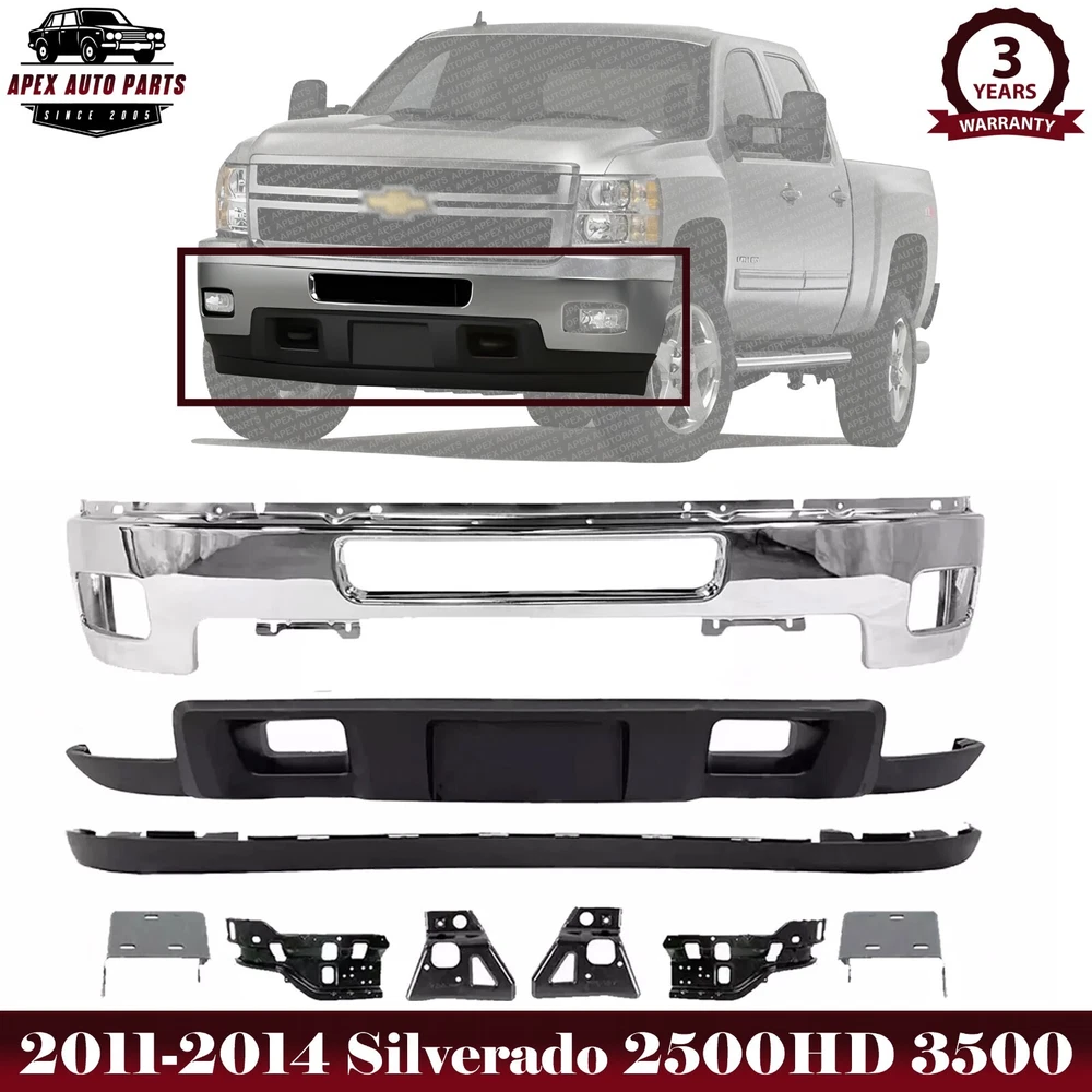 eBay Welcome to APEX AUTO PARTS Store Home About Us Feedback Add To Favorites New Arrivals Ending Soon Contact Us Front Bumper Chrome Steel + Lower Valance Air Deflector and Extension Textured + Inner Outer and Impact Brackets Right Passenger and Left Driver Side For 2011-2014 Chevrolet Silverado 2500HD 3500 Product Description WARNING : This product can expose you to chemical which is known to the State of California to cause cancer and birth defects or other reproductive harm. For more information go to www.P65Warnings.ca.gov. Specifics and Features : Quantity Sold : Set of 9 Product Fit : Direct Fit Recommended Use : OE Replacement Replaces OE Number : 25883348 25883347 25883352 25883353 25883349 19370763 20845670 25883350 25883351 Replaces Parts link Number : GM1063101 GM1062101 GM1062100 GM1063100 GM1002837 GM1092213 GM1095195 GM1067193 GM1066193 Includes : 1 x Chrome Front Bumper Face Bar 1 x Textured Front Bumper Lower Air Deflector 1 x Textured Front Bumper Lower Valance Extension 1 x Right Passenger Side Front Impact Bar Bracket 1 x Left Driver Side Front Impact Bar Bracket 1 x Right Passenger Side Front Bumper Outer Support Bracket 1 x Left Driver Side Front Bumper Outer Support Bracket 1 x Right Passenger Side Front Inner Bumper Support 1 x Left Driver Side Front Inner Bumper Support Notes : Compatible with : 2011 Chevrolet Silverado 2500 HD 2011 Chevrolet Silverado 3500 HD WT 2011 Chevrolet Silverado 3500 HD LT 2011 Chevrolet Silverado 3500 HD LTZ 2012 Chevrolet Silverado 2500 HD 2012 Chevrolet Silverado 3500 HD WT 2012 Chevrolet Silverado 3500 HD LT 2012 Chevrolet Silverado 3500 HD LTZ 2013 Chevrolet Silverado 2500 HD 2013 Chevrolet Silverado 3500 HD WT 2013 Chevrolet Silverado 3500 HD LT 2013 Chevrolet Silverado 3500 HD LTZ 2014 Chevrolet Silverado 2500 HD 2014 Chevrolet Silverado 3500 HD WT 2014 Chevrolet Silverado 3500 HD LT 2014 Chevrolet Silverado 3500 HD LTZ Shipping Payment Returns Terms & Conditions Feedback Contact Us DOMESTIC LOWER 48 US STATES: FREE SALES TAX: CA ONLY VERY IMPORTANT: Double check shipping address. We are not responsible for incorrect or undeliverable addresses. Please use Shipping & Payments tab on top of page for shipping details for your location. Shipping to PR, HI, AK and PO Box addresses will be charged the same as shipping to Canada. GU, VI, SAIPAN will be charged the same as international shipping rate. For Canada shipping please select the lowest price. We do not offer expedited shipping. US Territories such as GU, VI, SAIPAN will be charged the same as CANADA shipping rate. Transaction will be held until a full shipping amount received. Some of the packages cannot be delivered to a PO Box. Customer is responsible to ensure PO Box address given is deliverable by the shipping company. Package will be held until a valid physical address is provided. Customer assumes shipping charges incurred in shipping to undeliverable address. International buyers are responsible for all customs duties, taxes, and other applicable fees incurred by the country's customs/border regulations. Please contact customs for more information. We ship 98% of all orders the same or next business day after payment received/cleared. Please understand that once orders are shipped, we cannot control the transit times thereafter. Most orders will ship via USPS First Class/Priority Mail or FedEx/UPS or the best suitable carrier for the specific size of the product. We are not responsible for any changes to address after item has been shipped. Item will be shipped out within 24-48 hours after payment cleared, except for weekends and holidays. PayPal e-check takes 3-7 business days to be processed. We will not ship until an e-check has been cleared. We do not accept returns. However, if there is an issue with your package, please contact us within 5 days of delivery. If we are not contacted within this period, we will be unable to process any claims. For emissions related items, please check with your local jurisdiction for emission specific requirements before purchasing. All items do not come with installation instruction unless otherwise specified. If item is questionable, please consult your local professional/mechanic before making purchase. Shipping DOMESTIC LOWER 48 US STATES: FREE SALES TAX: CA ONLY VERY IMPORTANT: Double check shipping address. We are not responsible for incorrect or undeliverable addresses. Please use Shipping & Payments tab on top of page for shipping details for your location. Shipping to PR, HI, AK and PO Box addresses will be charged the same as shipping to Canada. GU, VI, SAIPAN will be charged the same as international shipping rate. For Canada shipping please select the lowest price. We do not offer expedited shipping. US Territories such as GU, VI, SAIPAN will be charged the same as CANADA shipping rate. Transaction will be held until a full shipping amount received. Some of the packages cannot be delivered to a PO Box. Customer is responsible to ensure PO Box address given is deliverable by the shipping company. Package will be held until a valid physical address is provided. Customer assumes shipping charges incurred in shipping to undeliverable address. International buyers are responsible for all customs duties, taxes, and other applicable fees incurred by the country's customs/border regulations. Please contact customs for more information. We ship 98% of all orders the same or next business day after payment received/cleared. Please understand that once orders are shipped, we cannot control the transit times thereafter. Most orders will ship via USPS First Class/Priority Mail or FedEx/UPS or the best suitable carrier for the specific size of the product. We are not responsible for any changes to address after item has been shipped. Payment Item will be shipped out within 24 hours after payment cleared, except for weekends and holidays. PayPal e-check takes 3-7 business days to be processed. We will not ship until an e-check has been cl