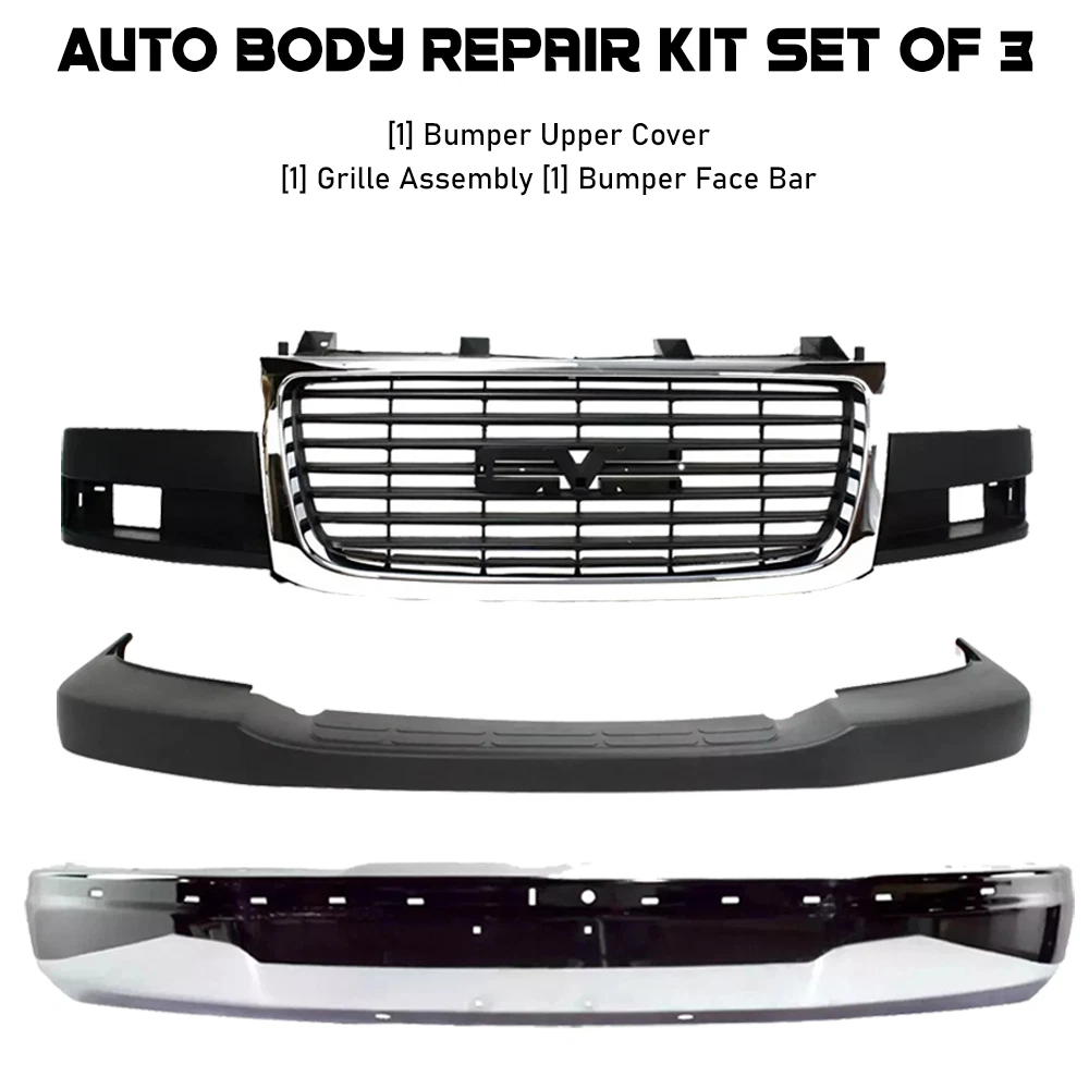 Hype_Turbo Free Shipping & Returns 3-4 days Shipping 30 Days Money Back 100% Satisfaction Front Bumper & Grille Chrome Kit For 2003-2023 GMC Savana 1500 2500 3500 4500 REPLACEMENT BUMPER KIT Manufactured from top quality components, this is your best option and inexpensive replacement for your rebuild, repair, and maintenance needs - an OE replacement product for your damaged or aged factory part. Replacement - the most affordable brand name for replacement parts that you need! Replacement is a professional brand for autobody, lighting parts, electrical, brake, suspension, intake and exhaust, and cooling and heating products. All Replacement brands include 2-year, unlimited-mileage warranty. NOTES Location : Front,Upper,Lower Brand New in the Box - Fit and Quality Guaranteed! Material Plastic,Steel,Chrome Anticipated Ship Out Time 1-4 business day Quantity Sold Auto Body Repair Kit Set of 3 Product Fit Direct Fit Replaces OE Number AF628 Color/Finish Textured,Chrome Recommended Use OE Replacement Replaces Partslink Number AF628 Vehicle Body Type 2-Door & 4-Doors Components [1] Grille Assembly Chrome & Black [1] Upper Bumper Cover Textured [1] Bumper Face Bar Chrome Prop 65 Warning WARNING: This product can expose you to chemical which is known to the State of California to cause cancer and birth defects or other reproductive harm. For more information go to www.P65Warnings.ca.gov. Shipping Notes We have multiple warehouses in US and will choose the nearest one for shipping according to your address and our inventory. GMC 2003-2014 Savana 1500 Base 2009-2010, 2012-2013 Savana 1500 SL 2003-2005, 2009-2010, 2012-2013 Savana 1500 SLE 2006-2014 Savana 1500 (submodel: LS, LT) 2003-2023 Savana 2500 Base 2009-2010, 2012-2013 Savana 2500 SL 2003-2005, 2009-2010, 2012-2013 Savana 2500 SLE 2007-2023 Savana 2500 (submodel: LS, LT) 2003-2023 Savana 3500 Base 2009-2010, 2012-2013 Savana 3500 SL 2003-2005, 2009-2010, 2012-2013 Savana 3500 SLE 2006-2023 Savana 3500 (submodel: LS, LT)