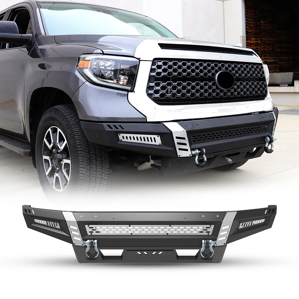 Front Bumper w/Lights+D-rings for 2014-2021 Toyota Tundra Off-Road Black Steel Fitments: For 2014-2021 Toyota Tundra Features: 【Perfect Fitment】The mid-width front bumper fits for 2014 - 2021 Toyota Tundra.The modular design of the front bumper makes installing the bumper on your car quicker and easier. 【Unique Design】The front bumper equipped with two D-rings,parking distance sensor mounting holes can work with the factory radar, (radar not included) heavy-duty D-ring shackle mounting bracket.Detachable decorative frame and honeycomb decorative net for DIY color spraying. 【Heavy Duty Steel & Long-lasting】The main body of the front bumper is made of heavy-duty high-strength steel. The front bumper also powder-coated with black textured finish and enhanced by pre-treatment to provide extreme resistance against wear. 【Easy Installation】Direct bolt-on upgrade replacement for your original stock front bumper reusing the factory mounting points. Requires no cutting, drilling or modification.The front bumper comes with mounting hardware kit. Specification: Color:Black Material: Steel Q235A Surface Finish: Black Anti Rust Powder Coated Fitment Type:Direct Replacement Placement on Vehicle: Front Mid-Width Front Bumper: 1.Allows DIY colour spraying 2.Shark Gill-like Decorative Panels 3.15-24 inches single row light bar can be installed (Not included) 4.Shackles are included 5.Product Dimensions:48.54 x 11.96 x 14.8 inch 6.Product Weight: 68 lbs Side Wings: 1.Retains OEM Parking Sensors (With dust plug when no sensors are installed) 2.Accept 3" or 4" Pod Light on Each Side (Includes a set of 4" Pod Lights ) 3.Product Dimensions: 25.43 x 10.63 x 8.89 inch 4.Product Weight: 24.25lbs Package included: 1 x Front Bumper 2 x Side Wings 2 x D-Rings Shackles 2 x 4" LED Pod Lights 1 x Set of All Mounting Hardwares Payment Delivery details Terms of sales About us Contact us Payment 👉 We accept PayPal (Recommended), credit card, VISA, Google Pay & Discover etc. 👉 Please submit your payment within 7 days after your purchase. 👉 If not, eBay will automatically open an Unpaid Item Dispute on our behalf if the item(s) are not paid within 7 days. Delivery details 👉 Please double check your delivery address and contact information. 👉 All items will be shipped within 1 business days after payment received. 👉 Tracking numbers will be easily accessible ASAP they are created and processed. Terms of sales 👉 Free 30 days Return, we will cover the return post fee. 👉 If a defective product was received, please do not hesitate to message us via eBay message. 👉 We will response in 24 hours in business to resolve the problem 👉 We stand behind our products. Items can be returned for exchange or full refund within 30 days from the date you receive. About us 👉 Wolfstorm has a huge warehouse and office located in the United States. 👉 All US domestic 48 states customers are able to benefit from the FREE SHIPPING services. 👉 Our experienced, professional customer service representatives offers prompt and courteous service. 👉 Best quality products, outstanding services and professional experience keep our customers. Contact us 👉 Please feel free to contact us if you have any problems. 👉 Emails will be replied within 24 hours in working days. 👉 After hours emails will be replied on the next business day. On Dec 3, 2024 at 01:25:42 PST, seller added the following information:
