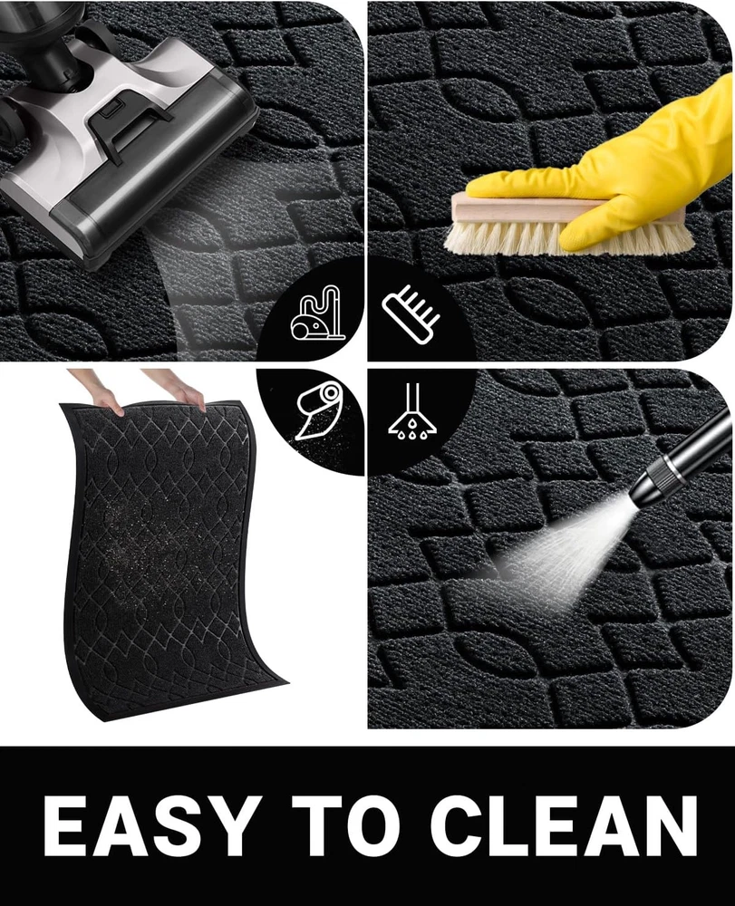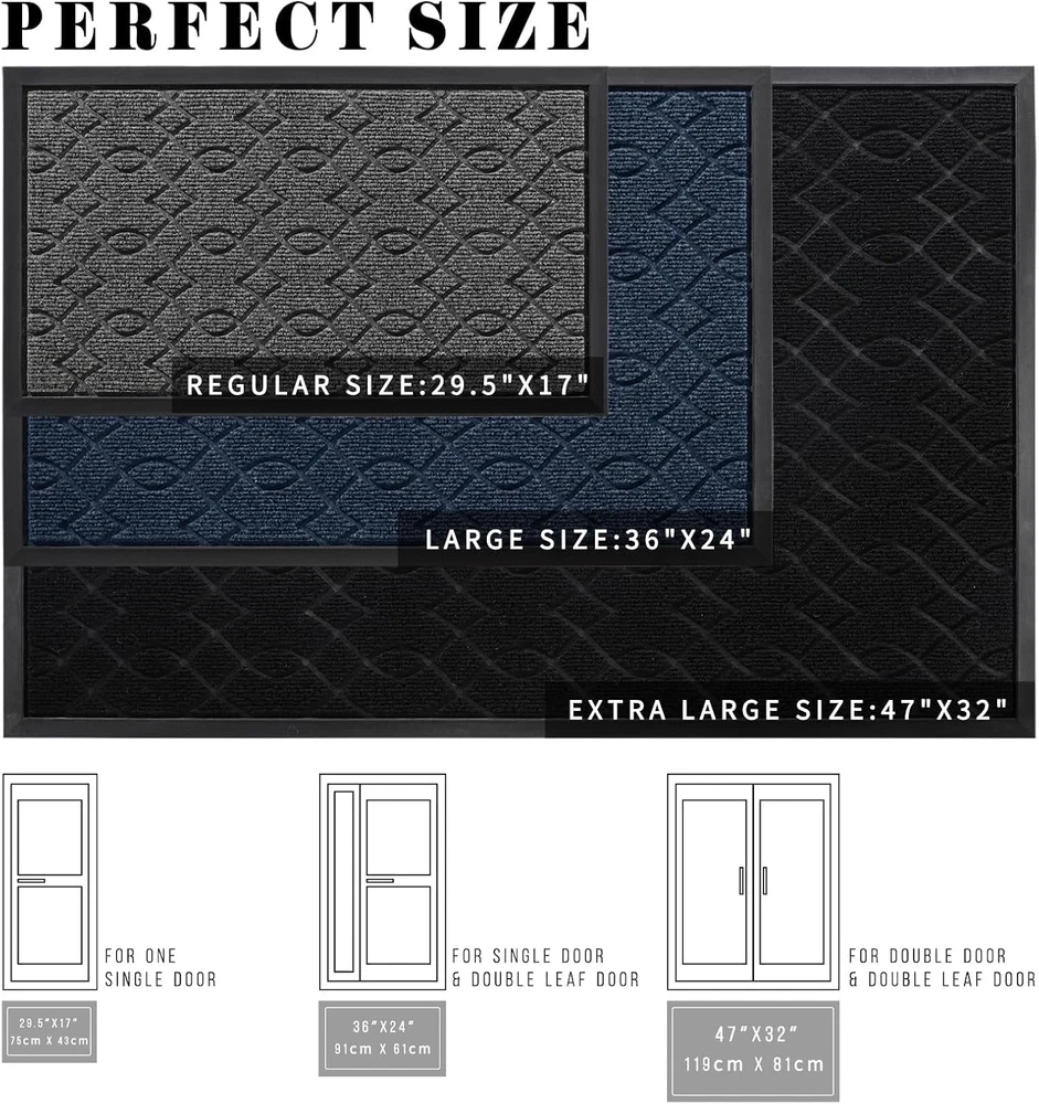Store New Arrivals Add to Favorite View Feedback Contact Fast deliveries to the customer's home Quality customer service John Make the customers happy! Front Door Mat Outdoor Indoor, 29.5X17 All-Season Heavy Duty Door Mats outside Entrance, All-Weather Heavy Duty Outdoor Welcome Mat, Non Slip Porch Patio Entrance Mat, Black Description 【Capture Dirt and Moisture】: Yimobra front door mat adopts heart striped groove design, forming a detention dam extending in all directions, helping to capture dirt, dust, gravel, mud, sand, grass or other messy debris and prevent them from entering Indoor; The surface of floor mat beautifully woven polyester fabric absorbs moisture, and the sturdy oblique rubber edge will not accumulate water in rainy and snowy days, keeping your home dry and clean 【Non Slip Rubber Backing】: Yimobra door mat outside entrance, 0.20 inch ultra-thin design, can glide under most doors without jamming or curling. The indoor mat uses a high-quality non-slip rubber backing to help prevent you from slipping when entering or going out, keeping you safe. At the same time, the rubber backing can prevent water and mud from penetrating the floor, keeping door mat in place and not sliding or wear the floor and effectively protect your indoor floor 【Easy to Clean】: Yimobra welcome mat, Just use a vacuum cleaner, or sweep with a broom, or tap the backing and shake the doormat. For more in-depth cleaning, use a washing machine or garden hose to rinse the floor mat, then hang it in a ventilated place to air dry it or use a dryer 【Rugged and Sturdy 】: The surface of this Yimobra water resistant outdoor mat is made of high-quality polyester, unique Hot-melt Planting Production Process, which is designed to be sturdy, strong and flexible. The doormat in outside can withstand a variety of weather and seasonal changes, whether it is sunny, rainy or snowy 【Wide Use】: Yimobra door mat are stylish and practical, suitable for indoor use to keep the floors of homes, living spaces, lobbies and offices clean, or outdoor use in front doors, backdoor, sidewalks, terraces, proch, garages, barns, driveways and many others busy areas; Heavy and sturdy materials, soft and flexible; Simple and stylish design complements any decoration Product Description 1 STURDY FABRIC 2 LOW-PROFILE 3 EASY TO CLEAN 4 NON-SLIP BACK The video showcases the product in use. The video guides you through product setup. The video compares multiple products. The video shows the product being unpacked. MORE YIMOBRA HIGH-QUALITY DOOR MATS MAYBE YOU LIKE Add to Cart Add to Cart Add to Cart Add to Cart Add to Cart Add to Cart Customer Reviews 4.4 out of 5 stars 1,147 4.6 out of 5 stars 995 4.6 out of 5 stars 983 4.6 out of 5 stars 269 4.4 out of 5 stars 1,821 4.5 out of 5 stars 1,776 Price $11.99 $ 11 . 99 $12.99 $ 12 . 99 $13.99 $ 13 . 99 $16.99 $ 16 . 99 $11.99 $ 11 . 99 $9.99 $ 9 . 99 Material Polyester Polyester Polypropylene Artificial Grass Polyester Polypropylene Border Natural Rubber Natural Rubber Natural Rubber Natural Rubber Borderless Natural Rubber Pattern Flower Welcome Grass Hello Geometry Geometry Outdoor/Indoor ✔ ✔ ✔ ✔ ✔ ✔ Easy Clean ✔ ✔ ✔ ✔ ✔ ✔ Anti-slip ✔ ✔ ✔ ✔ ✔ ✔ Low Profile ✔ ✔ ✔ ✔ ✔ ✔ Multi-color choice ✔ ✔ ✔ ✔ ✔ ✔ Rectangular ✔ ✔ ✔ ✔ ✔ ✔ Style Modern Weave Type Machine Made Pattern Geometric Is Stain Resistant Yes Theme Entrance/Exit Doormat Number of Pieces 1 Room Type Home Office, Hallway Material Polypropylene Age Range (Description) Adult Rug Form Type Doormat Item Thickness 0.25 Inches Indoor/Outdoor Usage Outdoor, Indoor Item Weight 2.32 pounds Pile Height Low Pile Construction Type Machine Made Occasion All Weather, Housewarming, All Season, Household daily use Color Black Shape Rectangular Back Material Type Rubber Product Dimensions 29.5"L x 17"W Product Care Instructions Vacuum, Sweep, Shake off, Rinse Size 29.5"x17" (Small) ABOUT US We offer the best prices around on high quality products. Our E-store includes media such as books, movies, music and games while offering electronics, toys, sporting apparel, clothing, tools, general home, garden items and more. SHIPPING We are always working hard to ensure your package arrives as soon as possible. Please understand that some factors like weather, high postal traffic, and the performance of shipping companies are outside of our control. We offer free shipping to the lower 48 states and ship within 2 business days of payment, usually sooner. We do not accept P.O. Boxes. Please provide a physical address. For shipping outside of the continental USA, we only use eBay's Global Shipping Program. The item is shipped to KY and then sent to the rest of the world. International customers are responsible for all duties and taxes. Continue to 'check out' to calculate costs for shipping the item to your country. Messages regarding eBay's Global Shipping Program MUST be directed at eBay EXCLUSIVELY. RETURNS We offer a 30-Day Return Policy on items in which you are not completely satisfied with. You have the option of a full-refund or an exchange of the item. No returns are available on items shipped outside of the USA PAYMENT We accept PayPal. CONTACT US This page content is yet to come Please ad us to your favorite seller and visit again later Thank You CUSTOMER SATISFACTION We try our very best to make sure every customer is completely satisfied. If there's a problem, message us! We're happy to help. WE ACCEPT