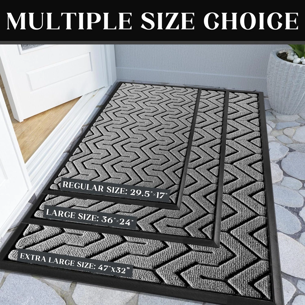 Store New Arrivals Add to Favorite View Feedback Contact Fast deliveries to the customer's home Quality customer service John Make the customers happy! Front Door Mat outside Entrance, 29.5X17 Waterproof Outdoor Indoor Welcome Mat, Heavy Duty Doormat, Low Profile, Non Slip Garge Porch Entryway Mat, Easy Clean, Grey Description 【Capture Dirt and Moisture】: Yimobra front door mat adopts triangular striped groove design, forming a detention dam extending in all directions, helping to capture dirt, dust, gravel, mud, sand, grass or other messy debris and prevent them from entering Indoor; The surface of floor mat beautifully woven polyester fabric absorbs moisture, and the sturdy oblique rubber edge will not accumulate water in rainy and snowy days, keeping your home dry and clean 【Rugged and Sturdy】: The surface of this Yimobra outdoor mat is made of high-quality polyester, unique Hot-melt Planting Production Process, which is designed to be sturdy, strong and flexible. The doormat in outside can withstand a variety of weather and seasonal changes, whether it is sunny, rainy or snowy 【Easy to Clean】: Yimobra front door mats outdoor, Just use a vacuum cleaner, or sweep with a broom, or tap the backing and shake the doormat. For more in-depth cleaning, use a garden hose to rinse the floor mat, then hang it in a ventilated place to air dry it 【Non Slip Rubber Backing】: Yimobra heavy duty door mat, 0.20 inch ultra-thin design, can glide under most doors without jamming or curling. The outdoor mat uses a high-quality non-slip rubber backing to help prevent you from slipping when entering or going out, keeping you safe. At the same time, the rubber backing can prevent water and mud from penetrating the floor, keeping door rug in place and not sliding or wear the floor and effectively protect your floor 【Wide Use】: Yimobra versatile welcome mats are stylish and practical, suitable for indoor use to keep the floors of homes, living spaces, lobbies and offices clean, or outdoor use in front doors, sidewalks, terraces, garages, barns, driveways and many others busy areas; Heavy and sturdy materials, soft and flexible; Simple and stylish design complements any decoration Product Description The video showcases the product in use. The video guides you through product setup. The video compares multiple products. The video shows the product being unpacked. 1 OUTDOOR 2 ENTRANCE 3 BALCONY 4 STARIS Item model number DM03D Style Modern Weave Type Machine Made Pattern Geometric Age Range (Description) Adult Country of Origin China Warranty Type Limited Warranty Is Stain Resistant Yes Theme Garden,Striped Number of Pieces 1 Is Autographed No Material Polyester, Rubber Model Name Durable Front Door Mat Rug Form Type Doormat Item Thickness 0.4 Inches Indoor/Outdoor Usage Outdoor, Indoor Water Resistance Level Water Resistant Room Type Hallway Item Weight 2 Pounds Pile Height Low Pile Construction Type Machine Made Occasion New Year, Housewarming Special Feature Fade Resistant, Stain Resistant, Non Slip, Washable Color Grey Shape Rectangular Back Material Type Rubber Product Dimensions 29.5"L x 17"W Size 29.5x17 Inch ABOUT US We offer the best prices around on high quality products. Our E-store includes media such as books, movies, music and games while offering electronics, toys, sporting apparel, clothing, tools, general home, garden items and more. SHIPPING We are always working hard to ensure your package arrives as soon as possible. Please understand that some factors like weather, high postal traffic, and the performance of shipping companies are outside of our control. We offer free shipping to the lower 48 states and ship within 2 business days of payment, usually sooner. We do not accept P.O. Boxes. Please provide a physical address. For shipping outside of the continental USA, we only use eBay's Global Shipping Program. The item is shipped to KY and then sent to the rest of the world. International customers are responsible for all duties and taxes. Continue to 'check out' to calculate costs for shipping the item to your country. Messages regarding eBay's Global Shipping Program MUST be directed at eBay EXCLUSIVELY. RETURNS We offer a 30-Day Return Policy on items in which you are not completely satisfied with. You have the option of a full-refund or an exchange of the item. No returns are available on items shipped outside of the USA PAYMENT We accept PayPal. CONTACT US This page content is yet to come Please ad us to your favorite seller and visit again later Thank You CUSTOMER SATISFACTION We try our very best to make sure every customer is completely satisfied. If there's a problem, message us! We're happy to help. WE ACCEPT