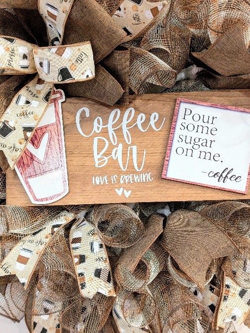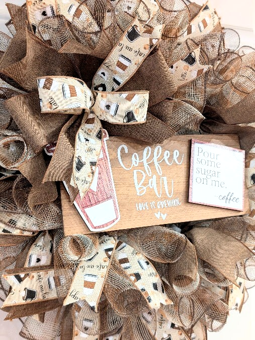 This Front Door Wreath is a handmade door decoration featuring a coffee theme, perfect for all occasions. Made with mixed materials, this artificial wreath is beige in color and measures 24 inches in height and width. It is designed as a wreath hanger and adds a touch of kitchen decor to your home, or even a coffee bar, making it a great gift for coffee lovers. Handmade in the United States, this decorative piece is sure to enhance the look of your front door or wall with its unique and charming design. This decorative piece is suitable for any room, porch, doors and adds a welcoming touch to the space. They can be hung anywhere - in a kitchen, living room, family room, bedroom, foyer, or over a mantel or fireplace. Really anywhere! And don't forget about gifts for your special person. *I'm always open to custom orders. Just message me with your idea and I'll work with you, and a custom wreath can be yours! *If you favorite my shop you will see my newly added wreaths and wooden signs that I have made. If any questions please don't hesitate to ask, I will get back to you. *If displaying outdoors,it's best to bring in your wreath during inclement weather.