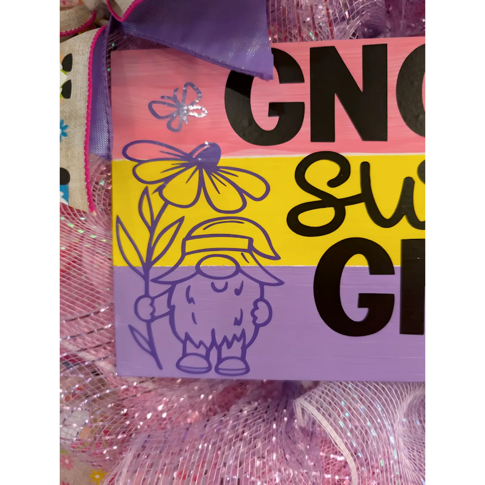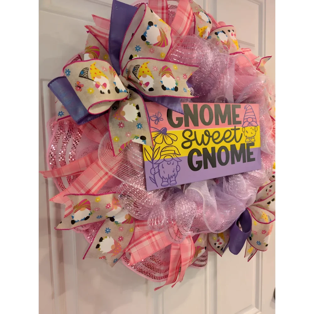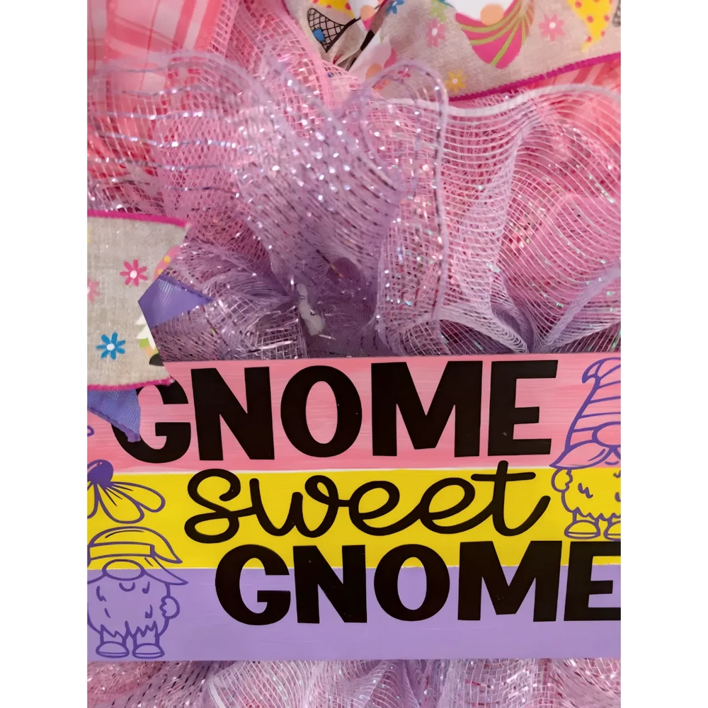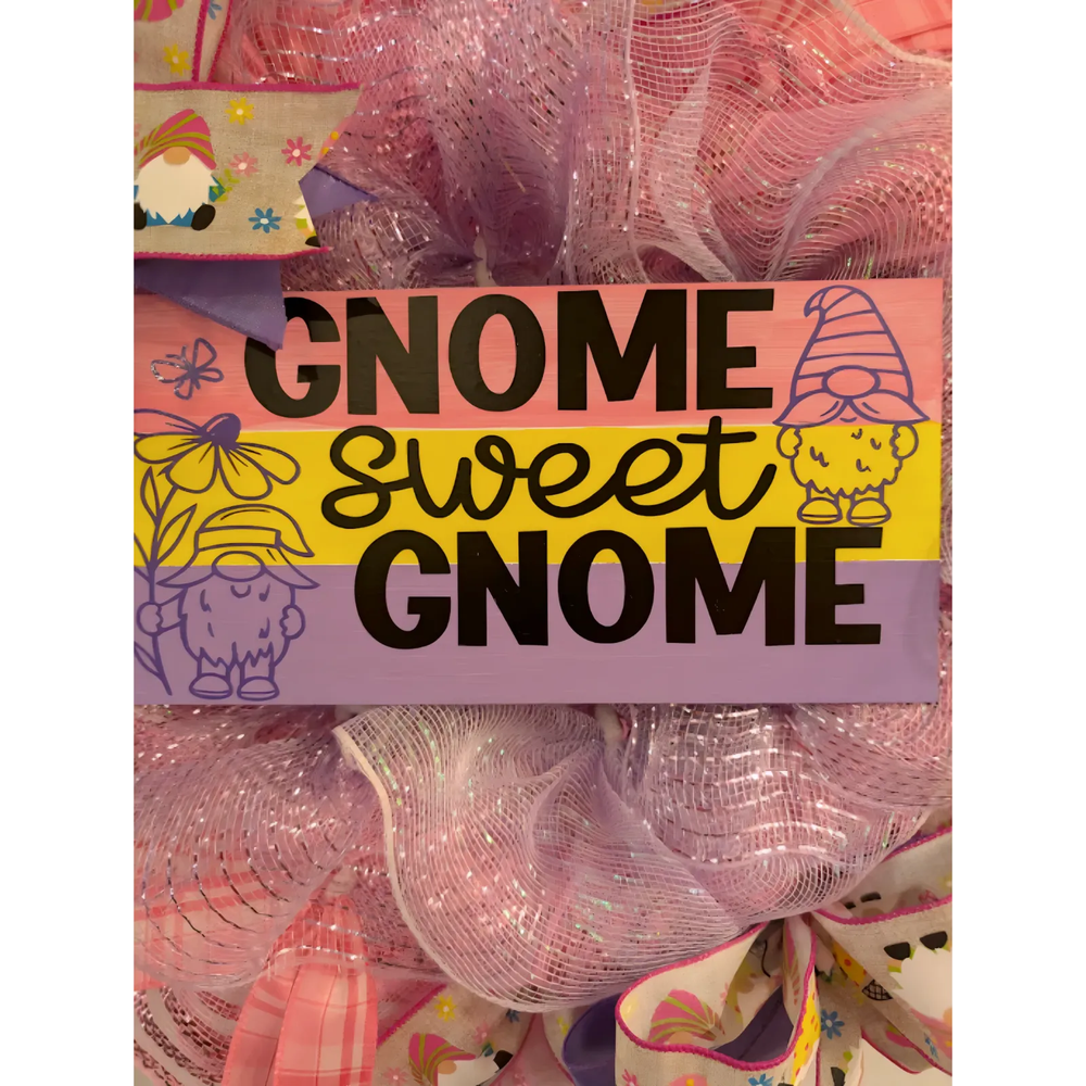 Embrace the charm of the seasons with our Gnome Sweet Gnome Wreath, a handcrafted masterpiece that adorns your front door with a whimsical touch. This wreath hanger, boasting a width and height of 23 inches, is designed to be the centerpiece of your festive decorations, welcoming guests with a delightful gnome theme that is perfect for any occasion. Crafted with care in the United States, the wreath features an eclectic mix of materials, bringing a colorful and unique feel to your space. Its artificial composition ensures year-round enjoyment, while the multicolored palette adds a vibrant splash to your home's exterior. Make a charming statement this season with this one-of-a-kind, handmade door decoration. This decorative piece is suitable for any room, porch, doors and adds a welcoming touch to the space. They can be hung anywhere - in a kitchen, living room, family room, bedroom, foyer, or over a mantel or fireplace. Really anywhere! And don't forget about gifts for your special person. *I'm always open to custom orders. Just message me with your idea and I'll work with you, and a custom wreath can be yours! *If you favorite my shop you will see my newly added wreaths and wooden signs that I have made. If any questions please don't hesitate to ask, I will get back to you. *If displaying outdoors,it's best to bring in your wreath during inclement weather.