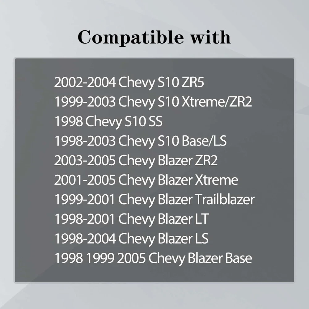 Store New Arrivals Add to Favorite View Feedback Contact Front Grille Grill with Chrome Center Bar Compatible with Chevrolet Chevy 1998-2004 S10 | 1998-2005 Blazer with Black Insert Description Material Plastic Item Weight 11.2 Pounds Color Chrome &Black Product Grade Replacement Part Material Type Plastic Manufacturer Part Number CPD-21-80532 Model Number CPD-CV832-1380CNF Vehicle Service Type Truck Item Weight 11.2 Pounds Installation Type Insert Compatible with Vehicle Type Truck Size Grille | w/Center Bar Item Fitment: Compatible With Chevrolet Chevy Blazer S10 Sport Utility Vehicle Standard Extended Cab Pickup 2005 2004 2003 2002 2001 2000 1999 1998 Xtreme SS Number: 12471853, GM1200413 Enhance Appearance: Front black grille assembly with black molding center bar and emblem provision, gives your vehicle a distinctive and stylish look, making it stand out on the road Durable: Boasting superior durability and outstanding impact resistance, it is the ideal material for off-road use Improve air circulation: It helps in directing the airflow to the engine compartment for better cooling and ventilation Protection: Protect the engine and radiator, acts as a barrier, preventing debris and large particles from entering and damaging the engine and radiator Product Description More Related Products Add to Cart Add to Cart Add to Cart Add to Cart Add to Cart Add to Cart Customer Reviews 5.0 out of 5 stars 3 5.0 out of 5 stars 3 5.0 out of 5 stars 1 4.7 out of 5 stars 105 4.7 out of 5 stars 105 4.7 out of 5 stars 105 Price $102.48 $ 102 . 48 $150.36 $ 150 . 36 $37.34 $ 37 . 34 $62.42 $ 62 . 42 $59.40 $ 59 . 40 $55.24 $ 55 . 24 Fitment 1998-2005 Chevy S10 / Blazer 1998-2005 Chevy S10 / Blazer 1998-2005 Chevy S10 / Blazer 1998-2005 Chevy S10 / Blazer 1998-2005 Chevy S10 / Blazer 1998-2005 Chevy S10 / Blazer For Modles w/o Holes For Bumper Strip w/o Holes For Bumper Strip w/LS Appearance Package w/LS Appearance Package w/LS Appearance Package w/o LS Appearance Package Featrue Black |w/o Molding Holes Black |w/o Molding Holes Black Strip With Holes Without Holes Without Holes Material Steel Steel Plastic Plastic Plastic Plastic Vehicle Location Front Center Front Center Front Front Lower Front Lower Front Lower ABOUT US We offer the best prices around on high quality products. Our E-store includes media such as books, movies, music and games while offering electronics, toys, sporting apparel, clothing, tools, general home, garden items and more. SHIPPING We are always working hard to ensure your package arrives as soon as possible. Please understand that some factors like weather, high postal traffic, and the performance of shipping companies are outside of our control. We offer free shipping to the lower 48 states and ship within 2 business days of payment, usually sooner. We do not accept P.O. Boxes. Please provide a physical address. For shipping outside of the continental USA, we only use eBay's Global Shipping Program.The item is shipped to KY and then sent to the rest of the world. International customers are responsible for all duties and taxes. Continue to check out in order to calculate costs for shipping the item to your country. Messages regarding eBay's Global Shipping Program MUST be directed at eBay EXCLUSIVELY. RETURNS We offer a 30-Day Return Policy on items which you are not completely satisfied with. You have the option for a full-refund or an exchange of the item. No returns are available on items shipped outside of the USA. PAYMENT We accept PayPal. CONTACT US This page content is yet to come Please ad us to your favorite seller and visit again later Thank You CUSTOMER SATISFACTION We try our very best to make sure every customer is completely satisfied. If there's a problem, message us! We're happy to help. WE ACCEPT Copyright © 2021 AutoDS. | All Rights Reserved