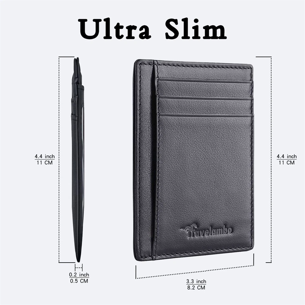 FUNCTIONALITY: Our RFID wallet not only offers security, it's also very functional. It features 6 card slots for you to place your most frequently used cards RFID BLOCKING TESTED & APPROVED BY INDEPENDENT LAB TESTS: Our wallets have been tested for 13.56 MHz Frequency in which our credit cards, debit cards, driver license and ID cards operate. please note that this wallet can't block some 142 kHz card signals ENHANCES PERSONAL SECURITY: We leverage top RFID technology to block RFID signals used to electronically scan your wallet as someone passes by unnoticed. This keeps your vital information in driver license, debit cards and credit cards from being stolen SUPER MINIMALIST & SLIM: Only 0.12" thick; Sizing 3.3" x 4.1" x 0.12"; extremely convenient to be carried around in your front or back pocket. 100% GENUINE LEATHER: soft and durable UNISEX DESIGN: Appreciated by both men and women, these RFID slim wallets for men and women feature a sleek design and smooth leather, making them popular minimalist wallets for all. They're a perfect gift for the globetrotters in your life