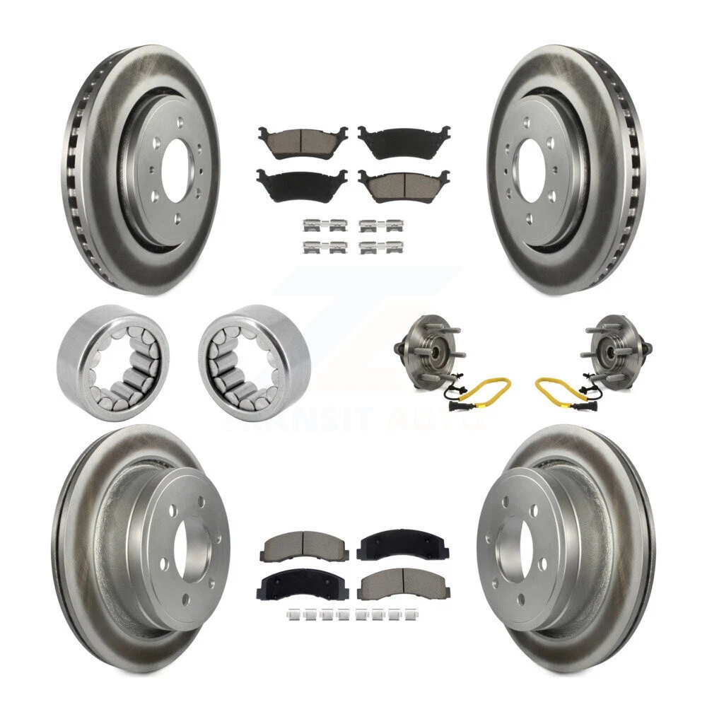 More details from seller Transit Auto Front Rear Wheel Hub Bearings Assembly Coated Disc Brake Rotors And Ceramic Pads Shoes Kit (10Pc) KBB-129769 COMPATIBILITY This product only fits the following vehicles : 2018 Ford F-150 Limited/Platinum/SSV/XL/XLT/King Ranch/Lariat and with 4WD AND With Manual Parking Brake Your vehicle is not listed? Search in our store by entering your vehicle year make model and the position you are searching for in the form below. PRODUCT DESCRIPTION Included (10 pcs) 2 x Rear Wheel Bearing (Both Sides) 2 x Front Wheel Bearing and Hub Assembly (Both Sides) 2 x Front Coated Disc Brake Rotor (Both Sides) 1 x Front Ceramic Disc Brake Pad Set (Hardware Included) 2 x Rear Coated Disc Brake Rotor (Both Sides) 1 x Rear Ceramic Disc Brake Pad Set (Hardware Included) Kit variants Bearing / Semi-Metallic Pads / Drilled Sloted Coated Disc Rotor / Bearing (KBB-129821) Bearing / Ceramic Pads / G-Coated Rotors / Bearing (KBB-129747) Bearing / Ceramic Pads / CMX Ceramic Pads / Bearing (KBB-129751) Bearing / Ceramic Pads / Drilled Sloted Coated Disc Rotor / Bearing (KBB-129805) Bearing / Premium Semi-Metallic Pads / Drilled Sloted Coated Disc Rotor / Bearing (KBB-129812) Bearing / Premium Ceramic Pads / CMX Ceramic Pads / Bearing (KBB-129764) Bearing / Semi-Metallic Pads / CMX Ceramic Pads / Bearing (KBB-129771) Bearing / Premium Semi-Metallic Pads / G-Coated Rotors / Bearing (KBB-129755) Bearing / Premium Semi-Metallic Pads / CMX Ceramic Pads / Bearing (KBB-129760) Bearing / Semi-Metallic Pads / G-Coated Rotors / Bearing (KBB-129779) Bearing / Premium Ceramic Pads / Drilled Sloted Coated Disc Rotor / Bearing (KBB-129815) Kugel Core made of High-Carbon AISI 52100 Chromium Alloy Steel features higher wear resistance, fatigue strength and steel hardness Premium quality MolyPro™ NLGI Grade 2 Molybdenum Grease (MoS2) to minimize wear and reduce friction providing longer lasting performance Exclusive multi-lip seals are made with ProSeal™ Nitrile Rubber (NBR) which can successfully function at high delta of temperatures while retaining its flexibility and sealing performance Inner rings are made of Case-Hardened Steel for improved resistance to surface wear and contact fatigue Thickness and metallurgy electronically validated for manufacturing consistency SAE J1714, J2525 and J2535 validated for OEM load-carrying capacity, durability, and performance characteristics Part Reference Numbers : WE60762 CBR-A36 R-1561-TV R1561-TV R1561TV Interchanges: WE60762, CBR-A36, N/A, R-1561-TV, R1561-TV, R1561TV Kugel Core made of High-Carbon AISI 52100 Chromium Alloy Steel features higher wear resistance, fatigue strength and steel hardness Premium quality MolyPro™ NLGI Grade 2 Molybdenum Grease (MoS2) to minimize wear and reduce friction providing longer lasting performance Exclusive multi-lip seals are made with ProSeal™ Nitrile Rubber (NBR) which can successfully function at high delta of temperatures while retaining its flexibility and sealing performance Inner rings are made of Case-Hardened Steel for improved resistance to surface wear and contact fatigue Thickness and metallurgy electronically validated for manufacturing consistency SAE J1714, J2525 and J2535 validated for OEM load-carrying capacity, durability, and performance characteristics Bearing already mounted and secured on the assembly to required OE torque specification for easier and faster installation Coated wheel studs resist corrosion and rust for easier removal and proper torquing Professional-Grade ABS sensors and clips with AccuPro™ technology included (when required by the application) Part Reference Numbers : WE61945 WH515177 WH515199 951-146 MB40334 515199 JL3Z-1104-A JL3Z-1104-C JL3Z-1104-E JL3Z-1104-L BR931016 HA590799 HA590800 TRB-515177 515177 Interchanges: WE61945, WH515177, WH515199, 951-146, N/A, MB40334, 515199, JL3Z-1104-A, JL3Z-1104-C, JL3Z-1104-E, JL3Z-1104-L, BR931016, HA590799, HA590800, TRB-515177, 515177 Genius Make sure to buy two (2)! (One for left side and one for right side) Engineered with with Carbon-Enhanced G-Cast™ (G11H18/G3000) iron castings to achieve an optimal braking performance (strength, stability, durability) Exclusive G-Coat™ double-layer (8µm) protective coating provides rust protection on 100% of the non-braking surface 100% Precision Spin and Mill-Balanced for smoother stopping and zero vibration at any speed Cross-Hatched smooth surface to improve the pad's ability to grip the rotor surface, especially during initial brake applications or in wet conditions Double disc ground finish eliminates lateral run-out and DTV (disk thickness variation) issues on the rotor and improves pad-rotor bed-in Tested for maximum tolerance to voluminous amount of constant thermal cycles CNC-Machined to the tightest tolerances to guarantee manufacturing precision and accuracy Best matched with CMX, TEC, SIM or Positive Plus brake pads Packed in a Vapor Corrosion Inhibitor (VCI) bag, it eliminates the need for an oil coating and reduces prep time Part Reference Numbers : AC54153 AG54153 CR54153 PR54153 54153 YH145698C YH145698 120.65119 121.65119 BR900368 BR900846 54233 248880508 48880508 748880508 900846 EC54153 680508 BD126433E BD126433 New in Box, Ready to Install, No Modifications Required Interchanges: AC54153, AG54153, CR54153, PR54153, 54153, YH145698C, YH145698, 120.65119, 121.65119, BR900368, BR900846, 54233, 248880508, 48880508, 748880508, 900846, EC54153, 680508, BD126433E, BD126433, AC85585, AR85585, CR85585, PR85585, 54186, YH421758C, YH421758, 120.65135, 121.65135, BR901114, 54454, 2488821373, 488821373, 7488821373, 901114, EC54186, 680976, BD180511E, BD180511 CMX Exclusive high-density ceramic formula for optimal braking power and quietness. Our formula provides unmatched braking power in hot or cold weather with optimal pad life Precision manufactured to meet automotive-industry TS16949 quality certification standard Quiet Channel Technology: Advanced materials virtually el